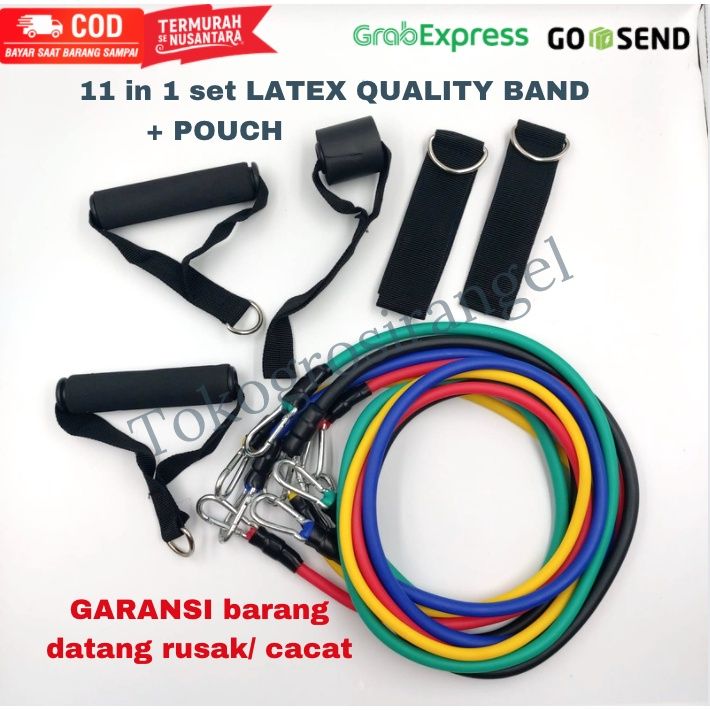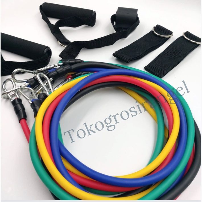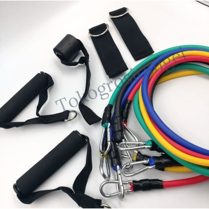 Resistance Band Set 11 in 1 Karet Elastis Panjang Gym Tali Alat Fitness Original