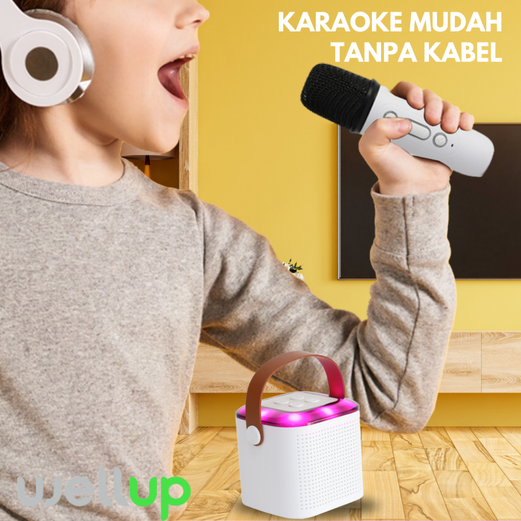 WELLUP SPEAKER BLUETOOTH MULTIFUNGSIONAL 2 IN 1 SET KTV KARAOKE SPEAKER PORTABLE WIRELESS PORTABEL +MIC BASS K22