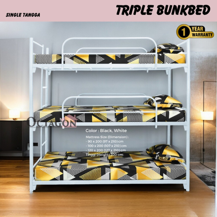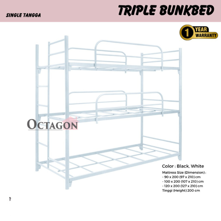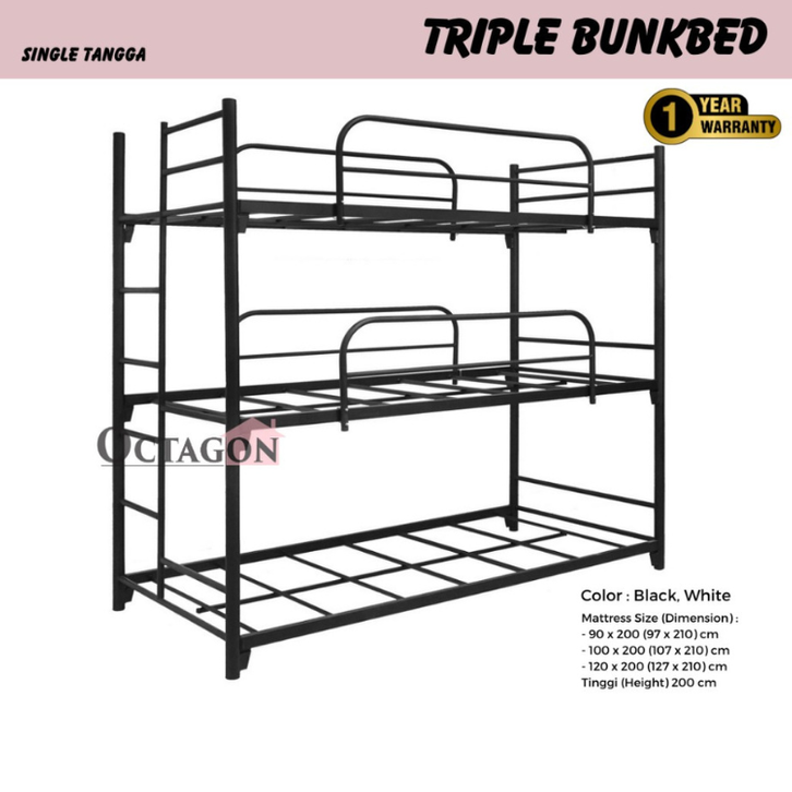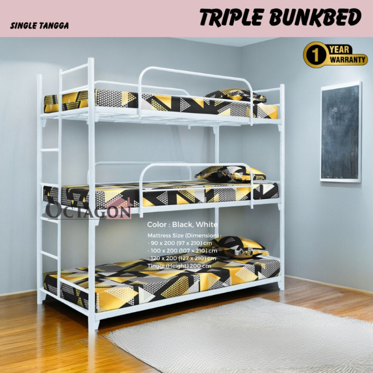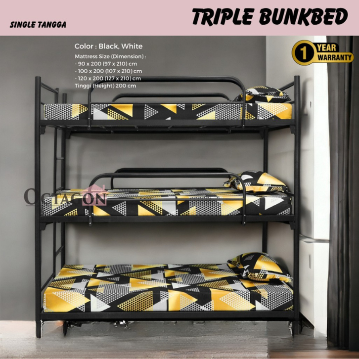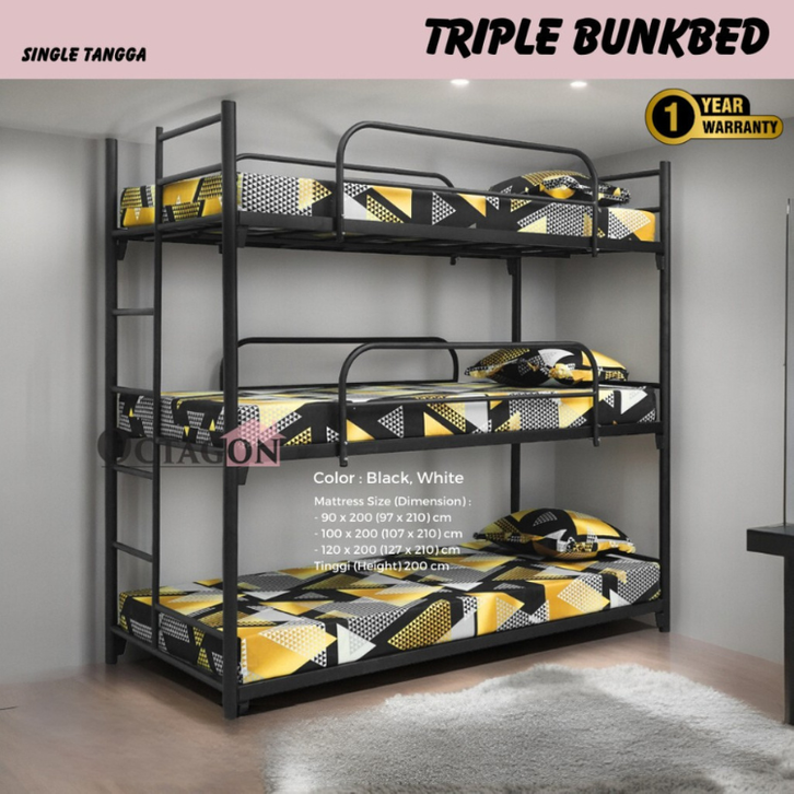 RANJANG TINGKAT SUSUN 3 KASUR DIVAN BESI SANDARAN UKURAN 120X200 100X200 90X200 DIPAN TEMPAT TIDUR TANGGA ANAK DEWASA