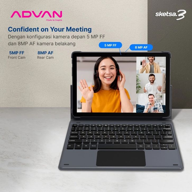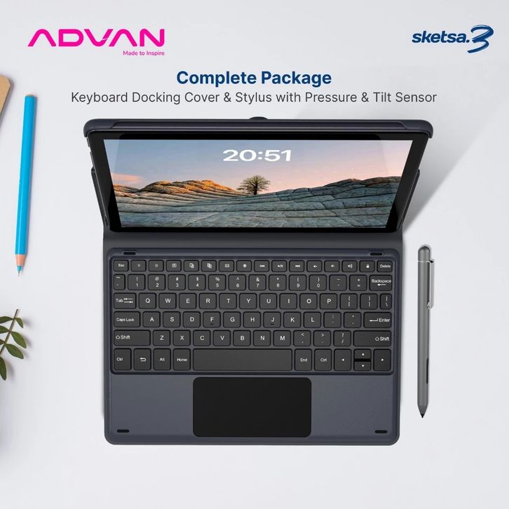 [FREE KEYBOARD + PEN] ADVAN Tab Sketsa 3 Dual Sim Card 4G LTE Layar 10.1” HD IPS 128GB+RAM 6GB Tiger T606 Android 13