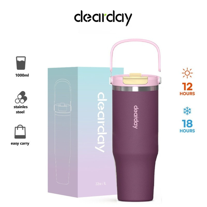 TUMBLER PORTABLE STAINLESS DEARDAY 1000 ML THERMOS CUP VACUUM INSULATED PURPLE TAHAN DINGIN DAN PANAS ORIGINAL MURAH