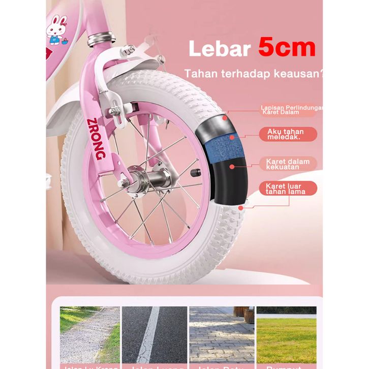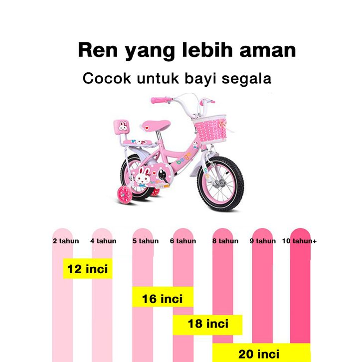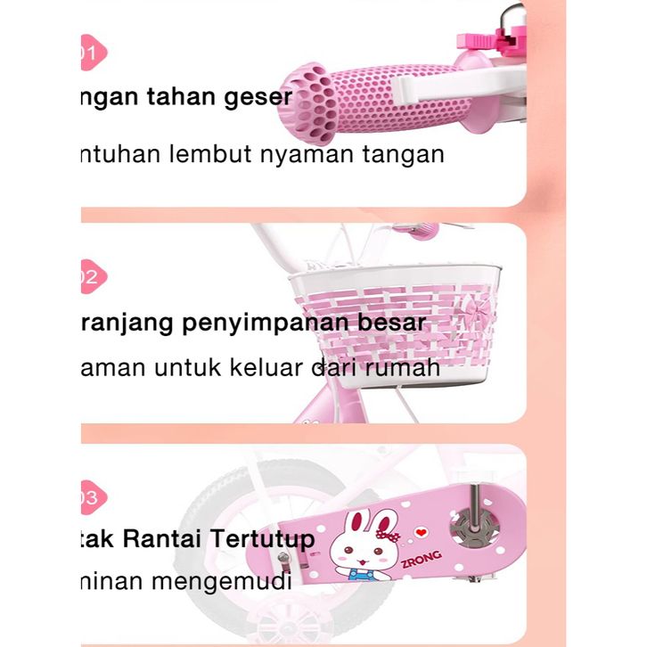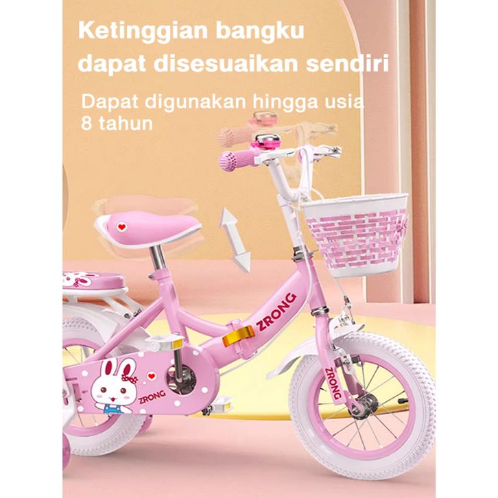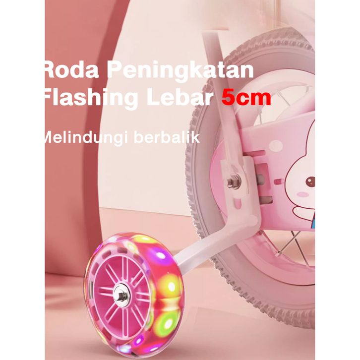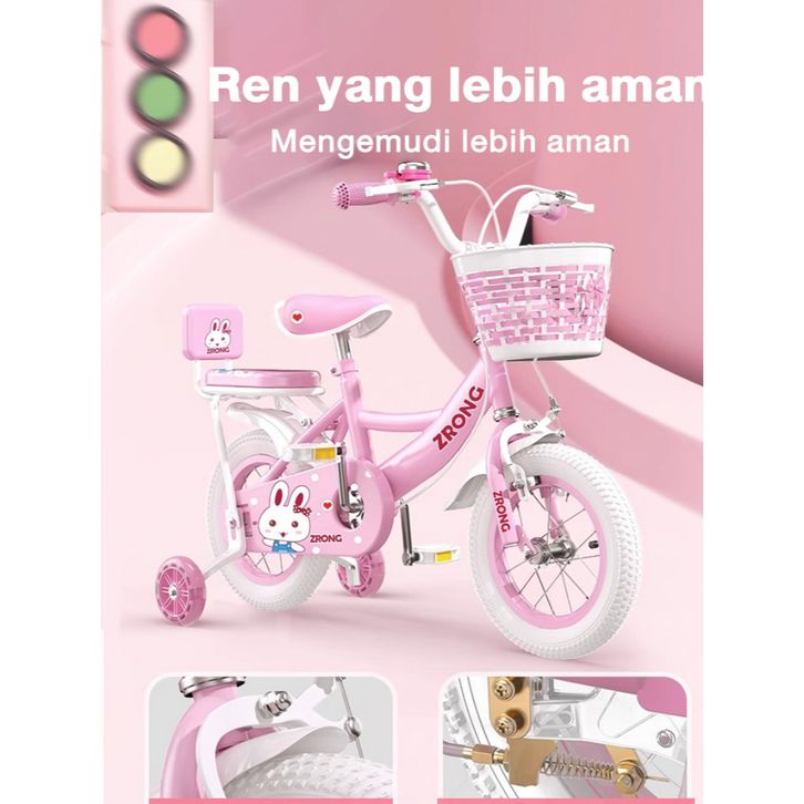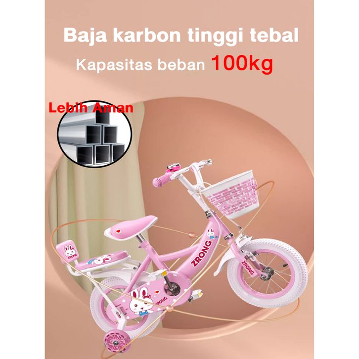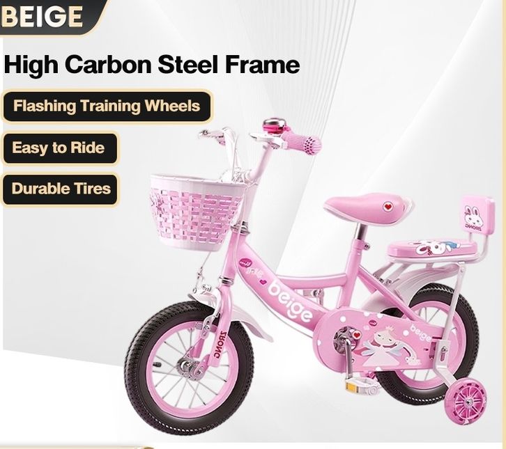SEPEDA ANAK PEREMPUAN | SEPEDA ANAK BEIGE BERWARNA PINK BAHAN KARBON DILENGKAPI RODA BANTU UNTUK USIA 3-12 TAHUN