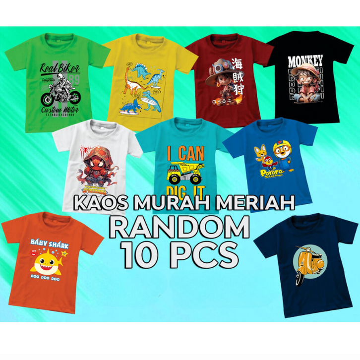 PAKET KAOS ANAK 10PCS SIZE S M L XL XXL KAOS ANAK LAKI LAKI DAN PEREMPUAN LENGAN PENDEK TERLARIS