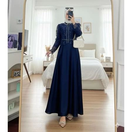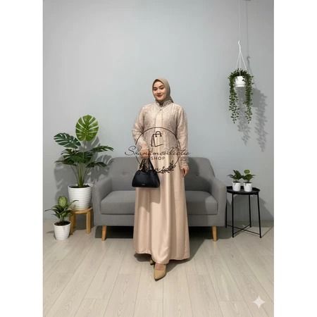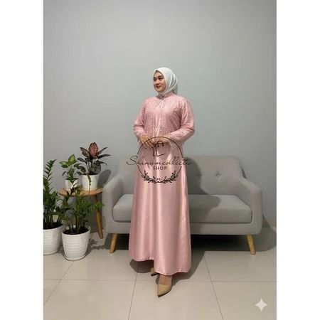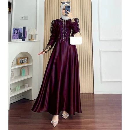 Sakura Dress Silk Premium Mix Brukat Aplikasi Payet Mutiara Gamis Pesta Kondangan Dress Lebaran 2026