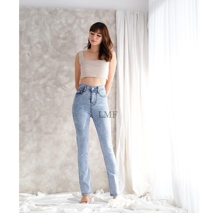 LMF Celana Cutbray Wanita Celana High Waist Denim Stretch Panjang HW 27-34