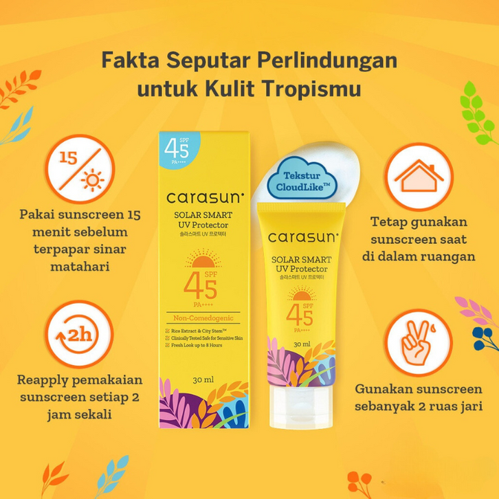 CARASUN Solar Smart UV Protector Sunscreen SPF 45 PA++++ (✔BPOM) 8ml | 30ml | 70ml