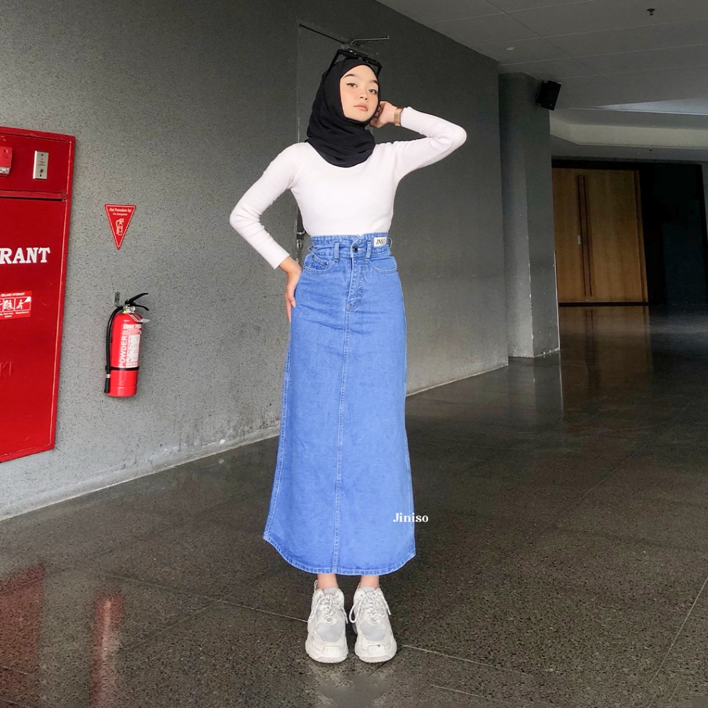 PROMO AKHIR TAHUN JINISO - ULTRA HIGHWAIST ROK SLIT SEVENTY JEANS PANJANG