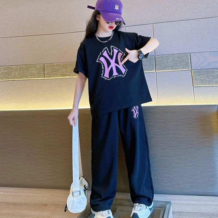 [Star] Setelan Anak Perempuan Usia 4-15 Tahun Baju Oneset Kaos Anak Motif Lucuu Model Lengan Pendek Dan Celana Panjang B