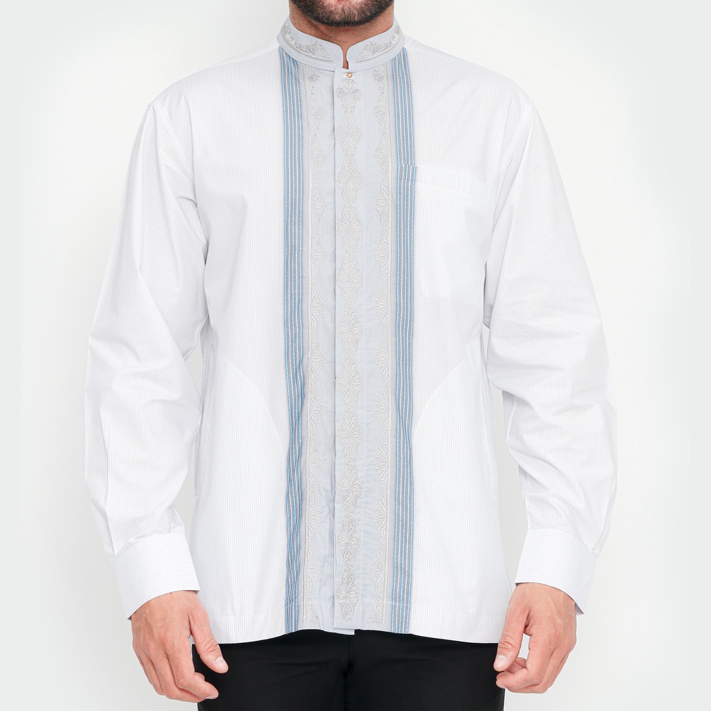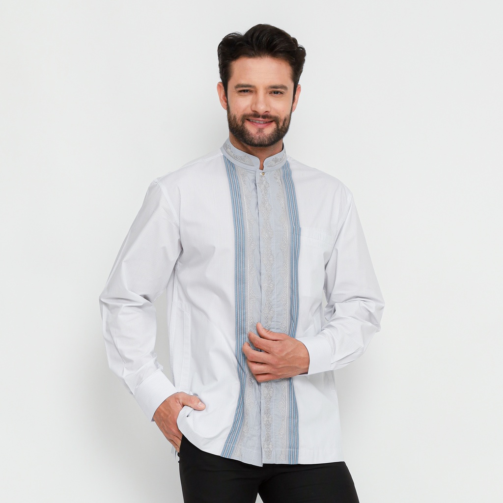 BAJU KOKO BHS CLASSIC MOTIF TRIPLE PUTIH ABU 02 ORIGINAL