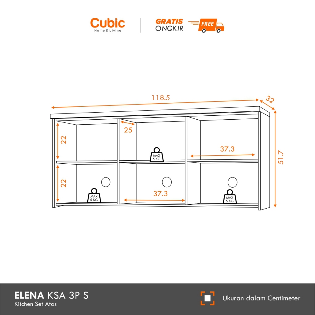 KITCHEN SET/KITCHEN SET MINIMALIS/RAK DAPUR MURAH CUBIN 3 PINTU MINIMALIS/RAK ATAS DAPUR KECIL ELENA AVE KSA 3P TERLARIS
