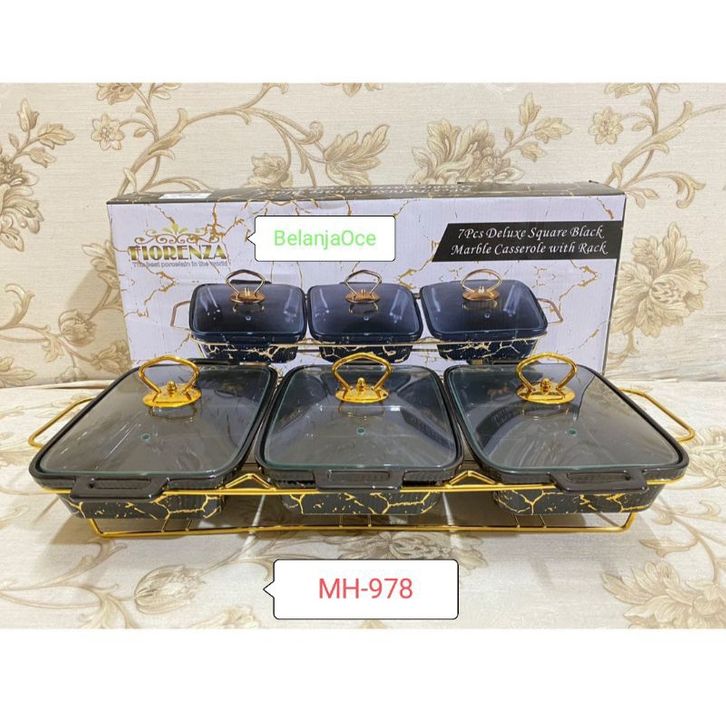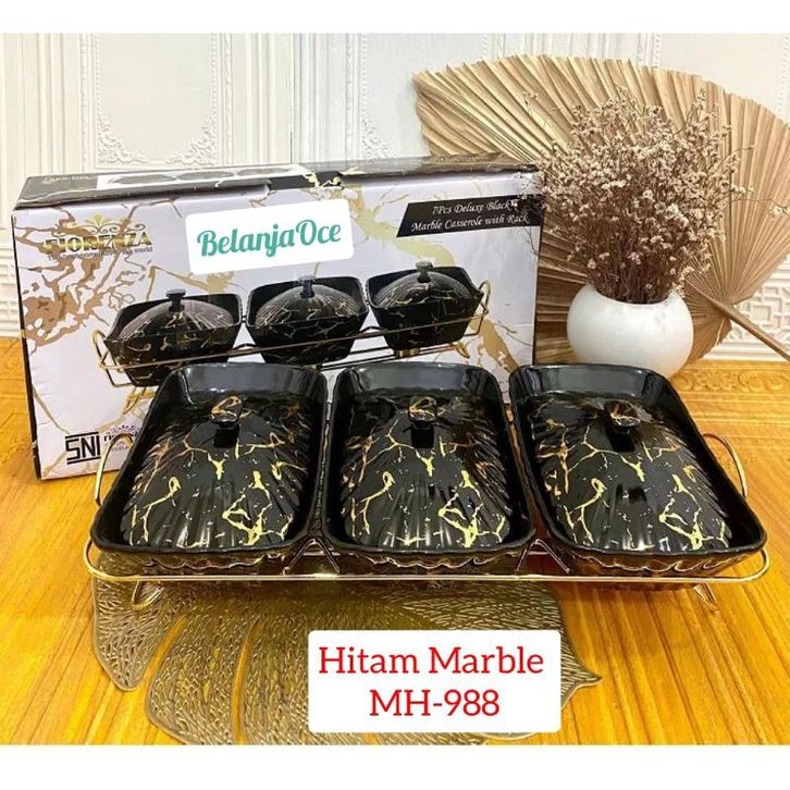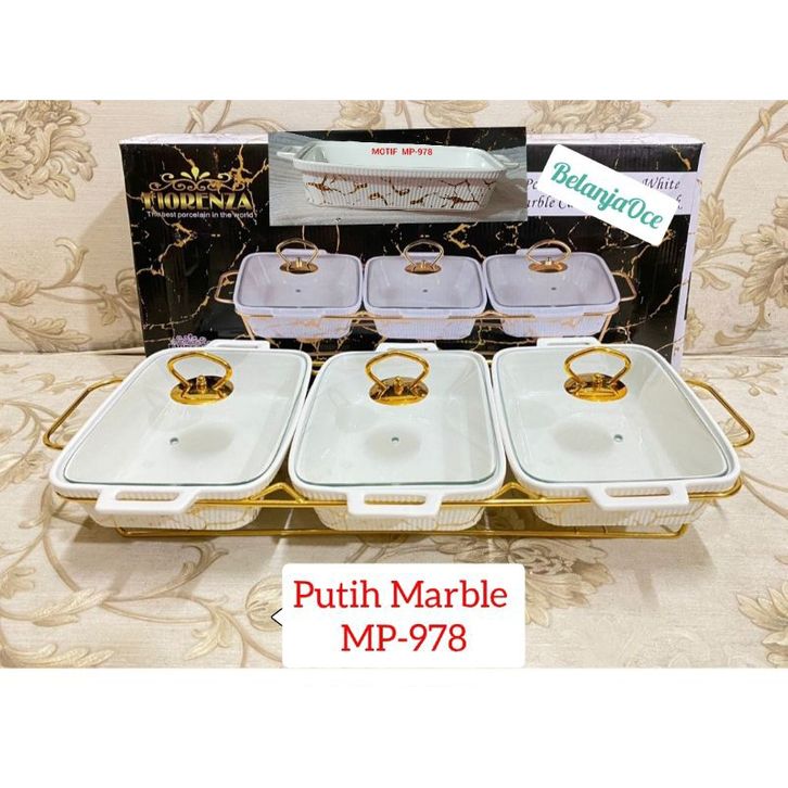 PROMO DISKON 75% [Packing Kayu] Prasmanan Gandeng Keramik Marble Fiorenza Set 3 Pcs Wadah Saji Prasmanan Mewah Kekinian