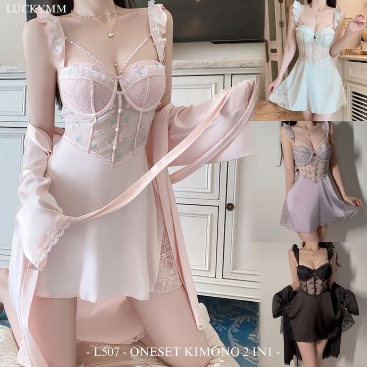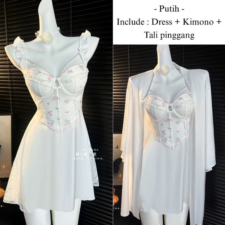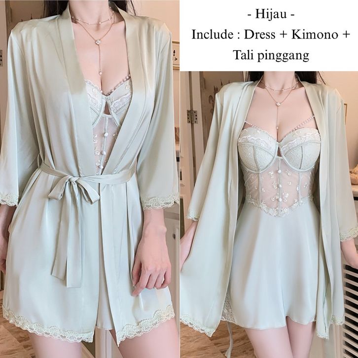 Kimono 2in1 Baju Tidur Seksi Wanita Dewasa Lingerie Sexy Wanita Premium Sleepwear Lingerie Push Up Lingerie Satin