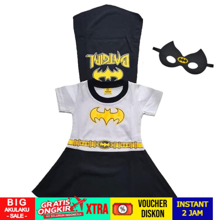 Dress anak perempuan batgirl dapat topeng / baju superhero anak perempuan BAHAN PREMIUM