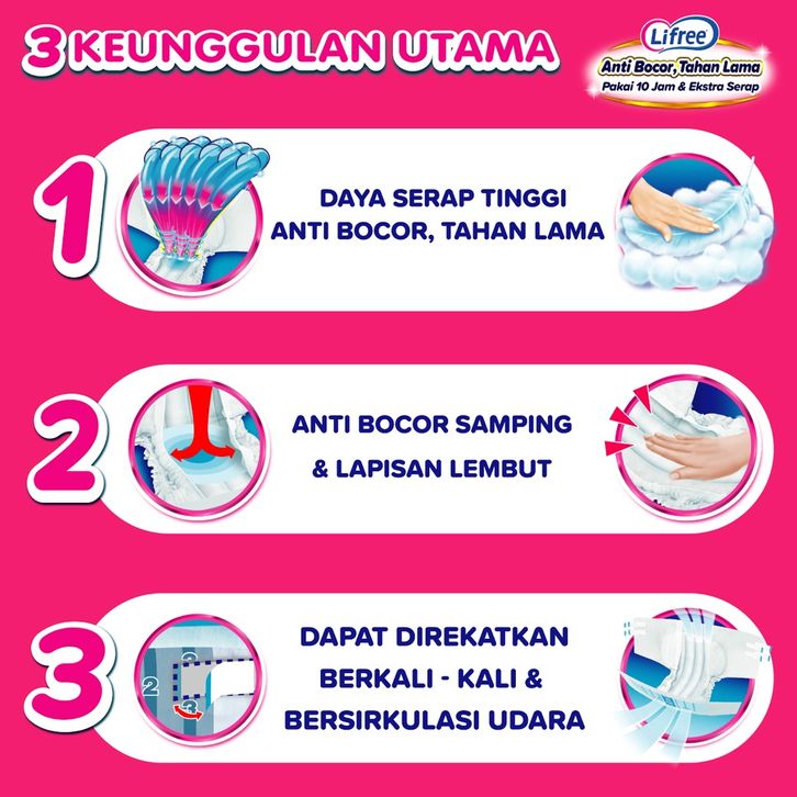 Popok Dewasa Lifree Tipe Perekat XL 13 x 3 Packs Ekstra Serap Anti Bocor Hingga 10 Jam Pempes Pempers Pampers Original