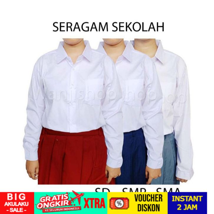 Kemeja putih panjang SD/SMP/SMA/Seragam sekolah seragam kerja kemeja putih hem BAHAN PREMIUM
