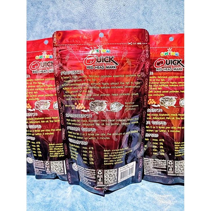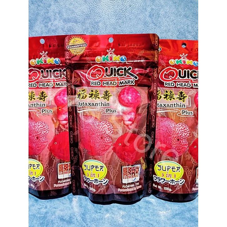 PELET OKIKO QUICK RED HEAD MARK 100GR PAKAN IKAN LOHAN MERAH