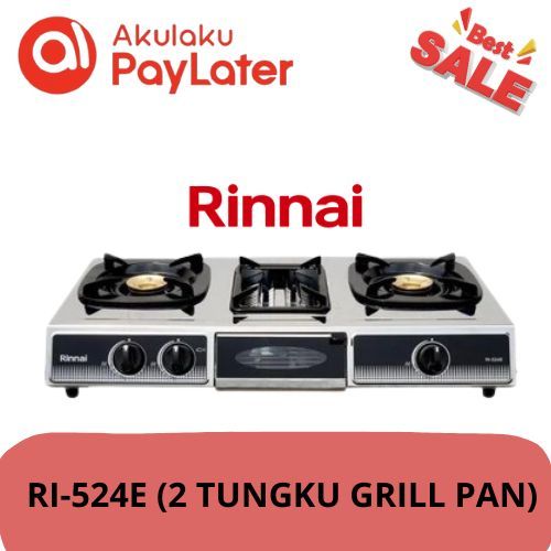 Kompor Gas Rinnai 3 Tungku RI524E RI524 RI524 Grill Pemanggang Api Biru Original