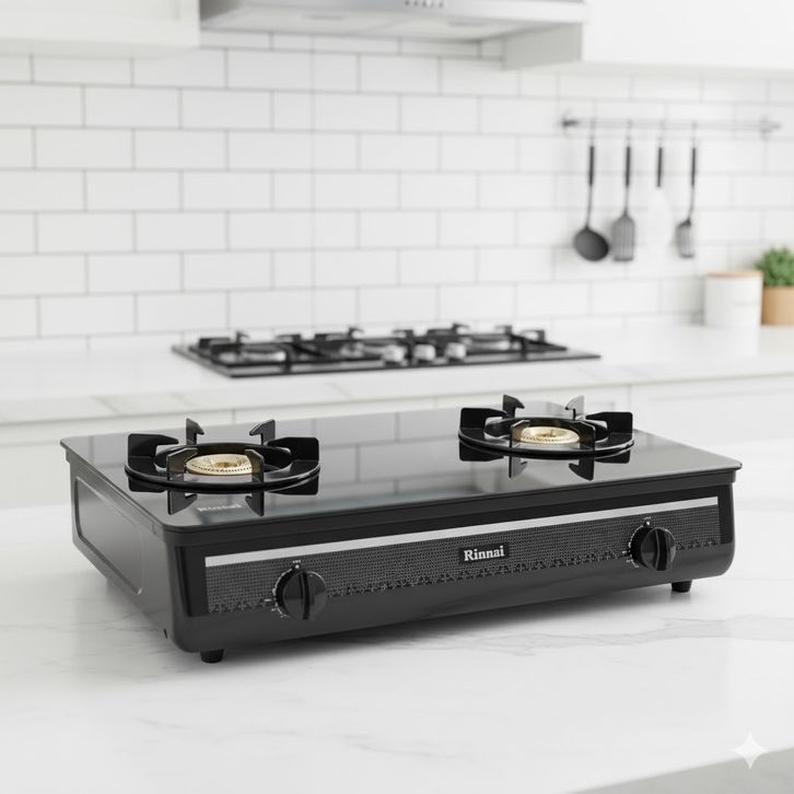 Kompor Gas Kaca Rinnai 2 Tungku -Api Biru Kuat | Model 712GA B / 712GA W / 712GAOB