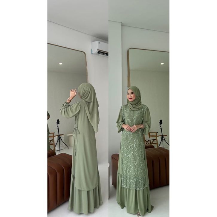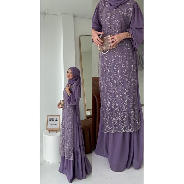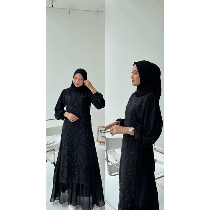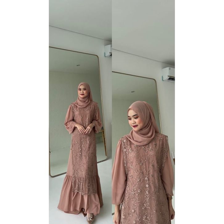 NEW - TYA DRESS INNER + OUTER CERUTI BABYDOLL KOMBINASI BRUKATTILLE / Gamis Kondangan BAJU DEWASA MURAH TERBARU