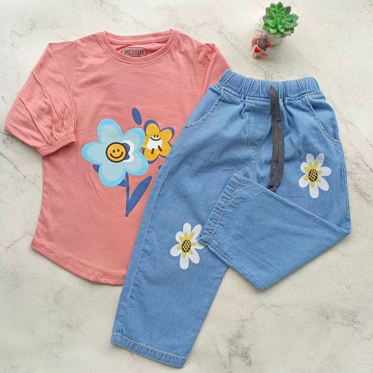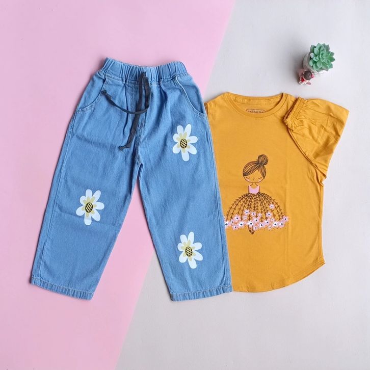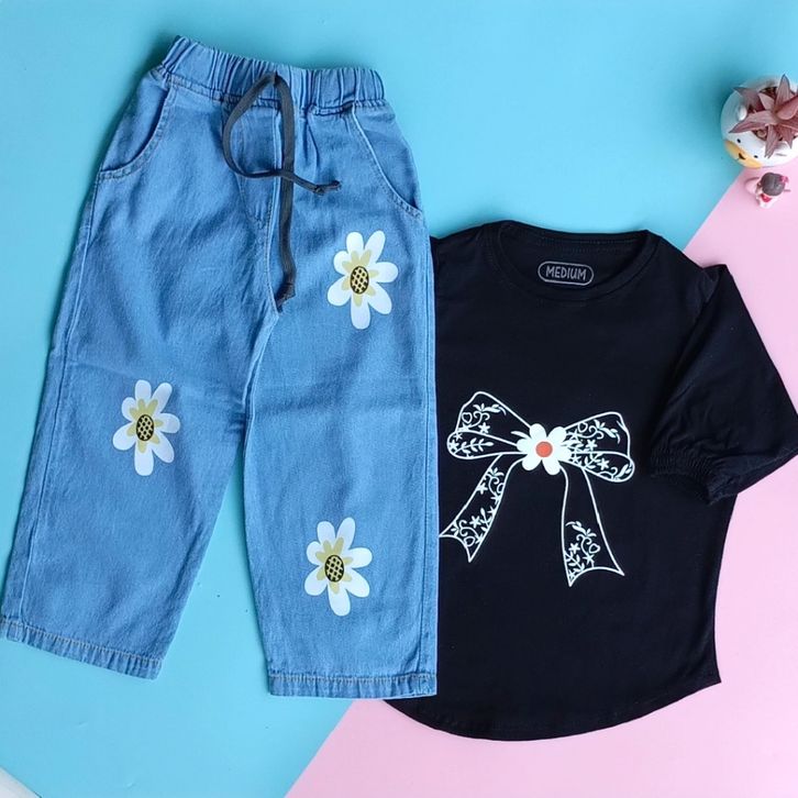 Setelan Blouse Dan Celana Kulot Print Bunga Anak Perempuan Lucu 3-12 Tahun Baju Lebaran Anak Cewek 2026 Terbaru