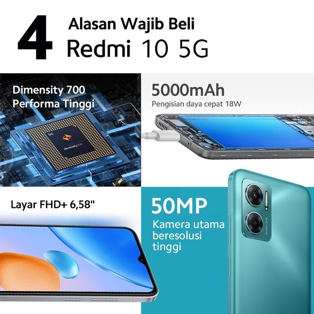 HP XIAOMI REDMI 10 5G (6/128GB) MEDIATEK DIMENSITY 700 50MP KAMERA LAYAR FHD+ 6,58 90HZ 5000MAH TERMURAH BEST SELLER