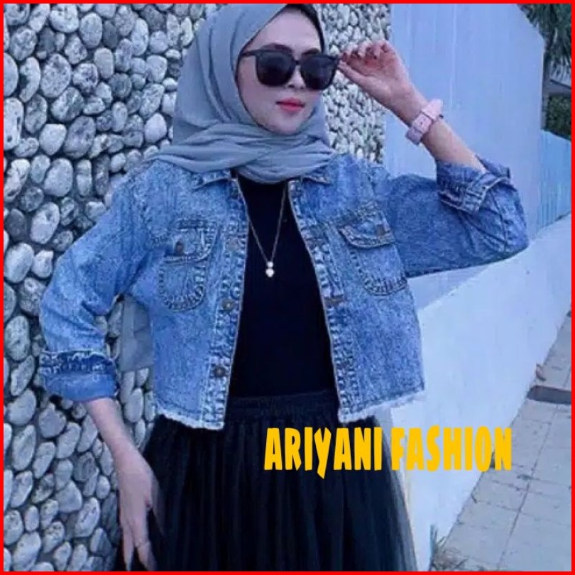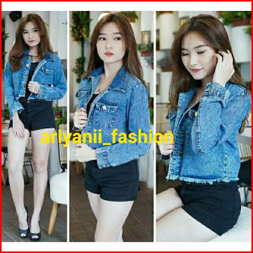 Jaket Jeans Crop Wanita Cewek Cewe Rawis Jaket Jins Denim Murah