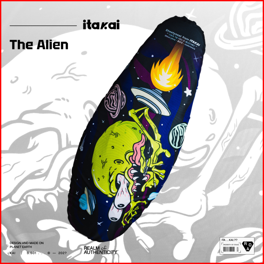 Itakai Sarung Jok The Alien - Cover Jok Motor Motif Premium Anti Air Anti Cakar Kucing