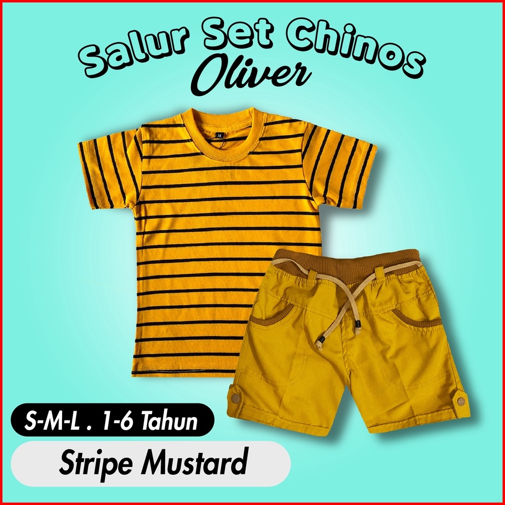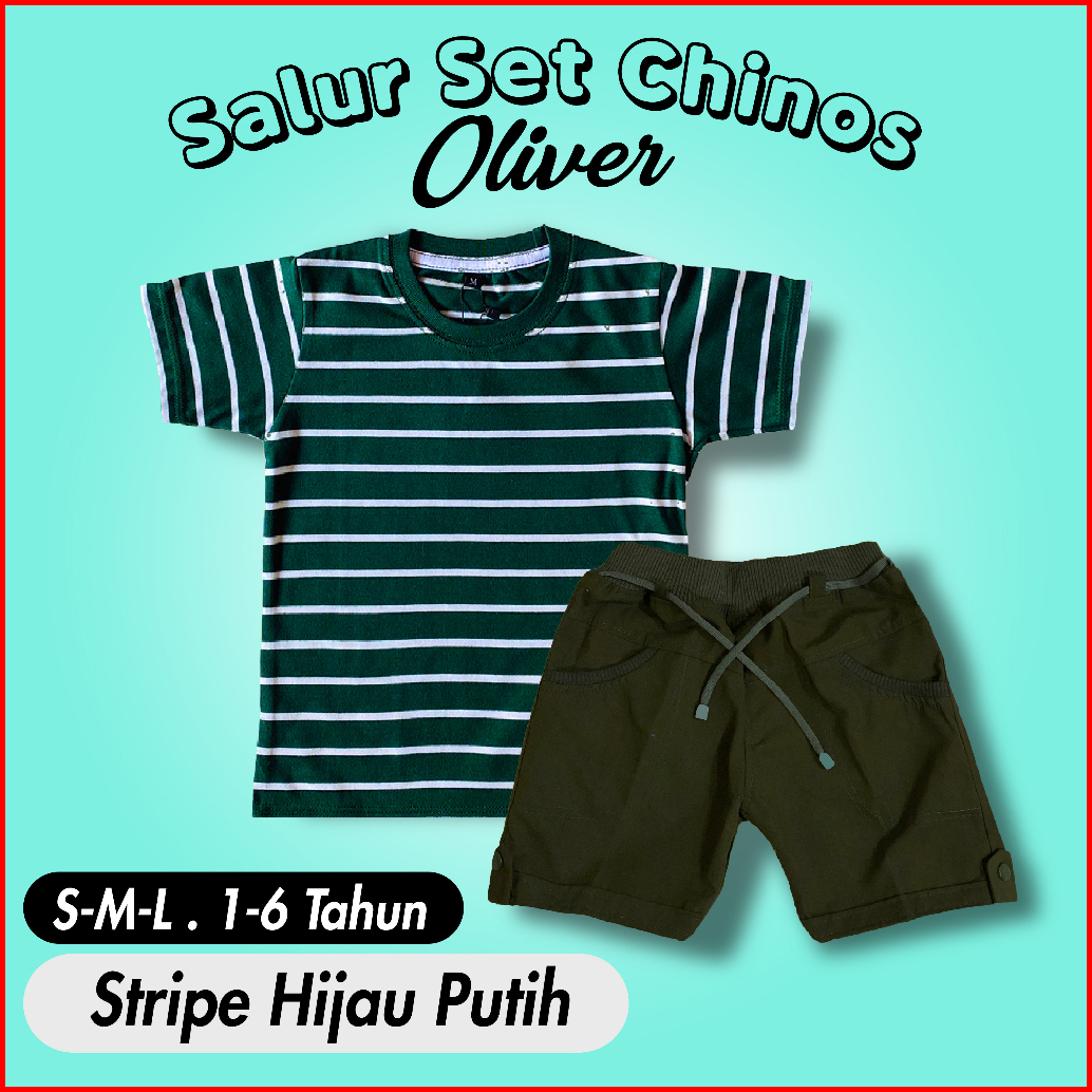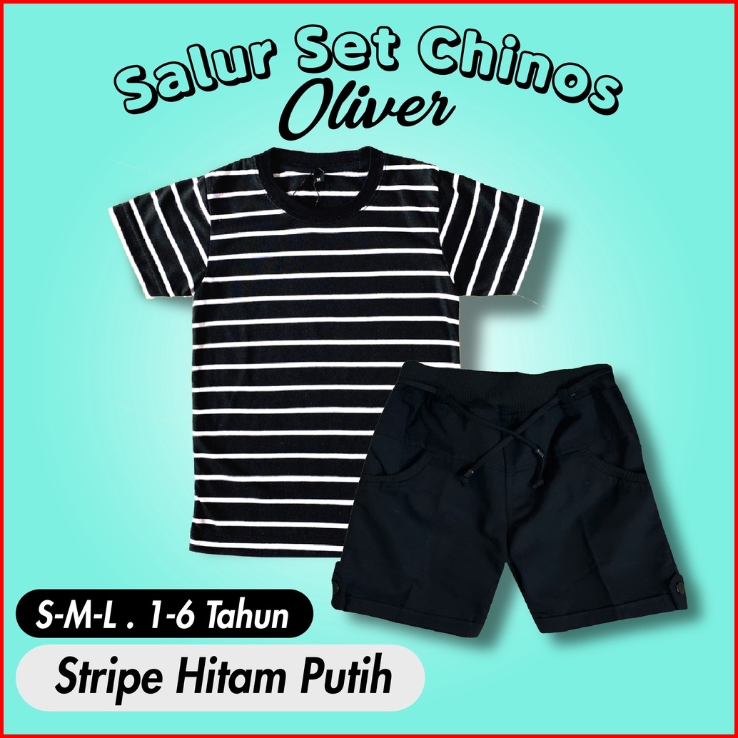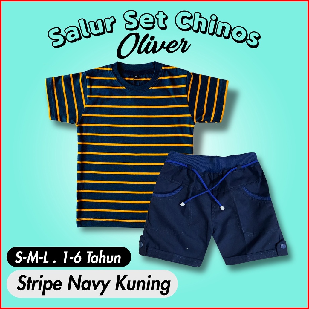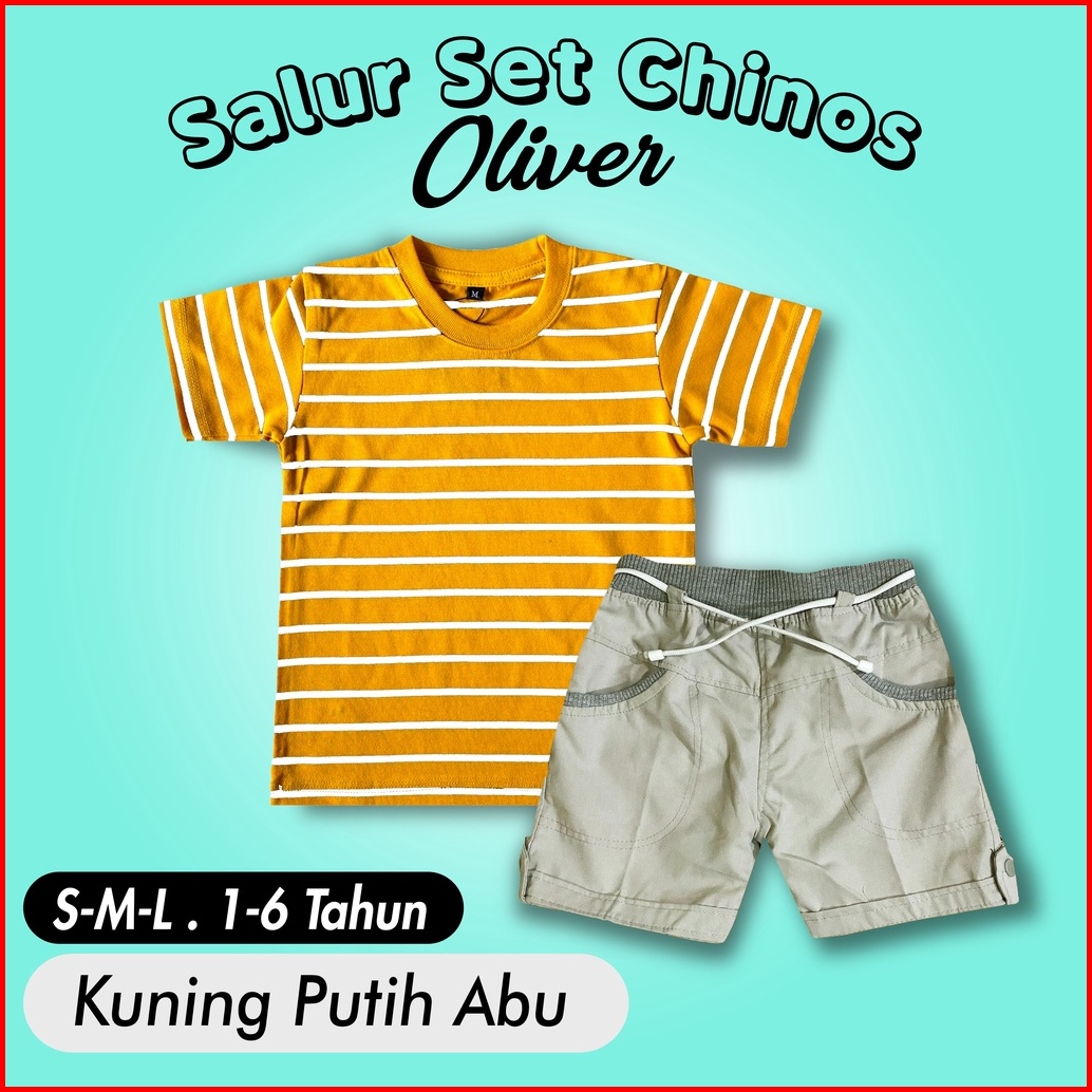 Ramadhan Sale - Oliver Kids - Setelan Anak 1-7 Tahun Setelan Salur Anak Celana Chino Dan Baju Anak Polos Katun Combed On