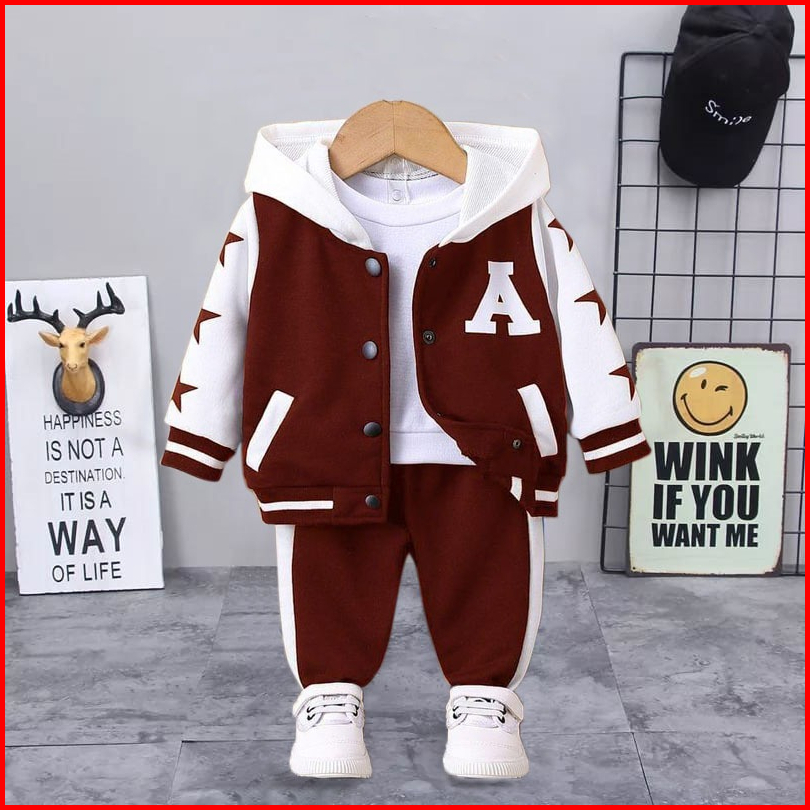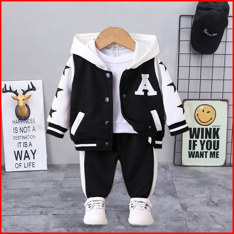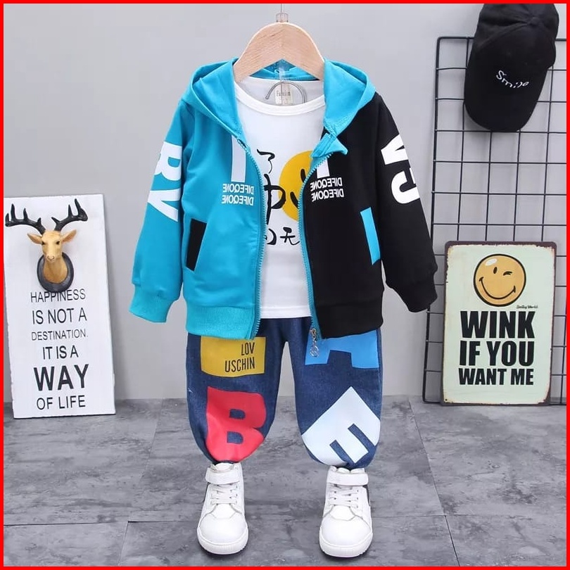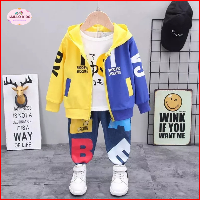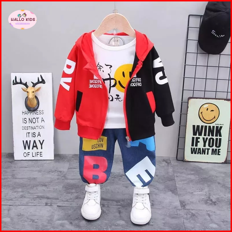 Hallokids-setelan Anak Laki Laki 1-5 Tahun Setelan 3 In 1 Smile Setelan Anak Jaket Anak Kaos Anak Outerwear Anak Terbaru