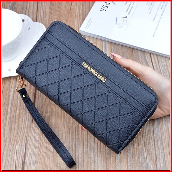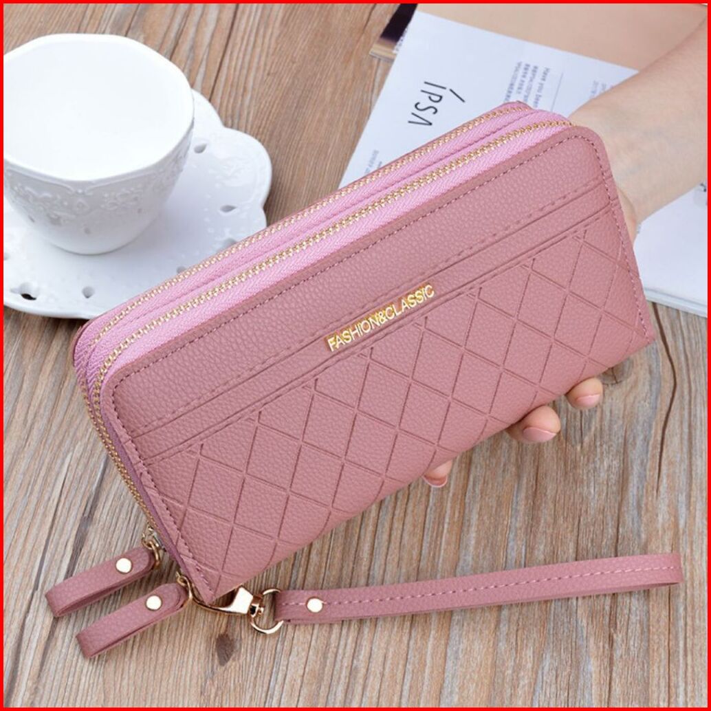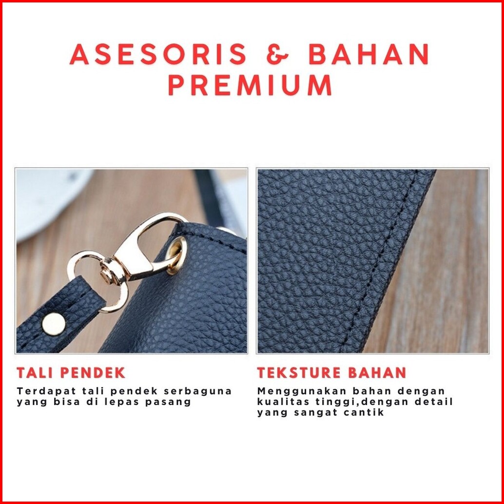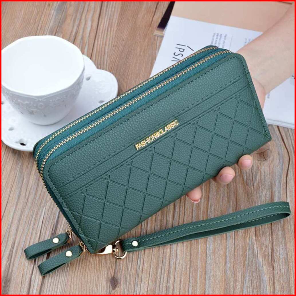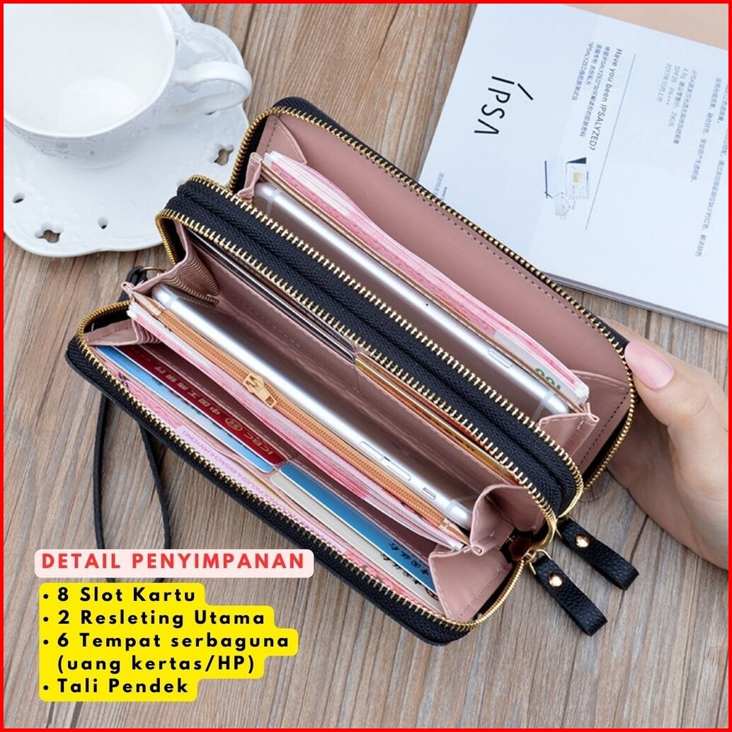 Dompet Wanita 2 Resleting Premium Sermai Hitam Kulit Pesta Korea Tali Batam Murah Abg