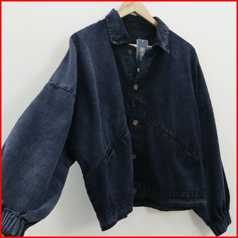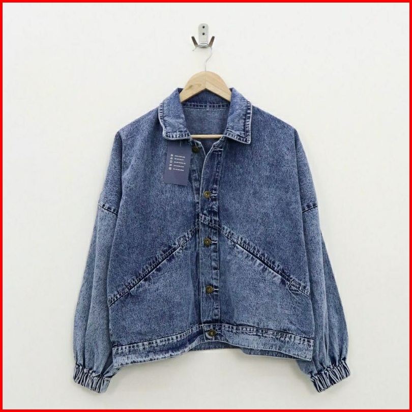 Jaket Jeans Jumbo Ld 140cm Jaket Crop Jeans Korean Style Lengan Karet Jaket Jeans Vintage Kekinian Best Seller Terlaris