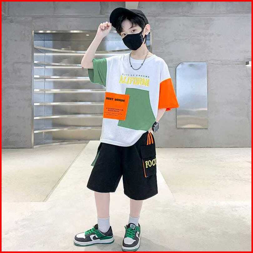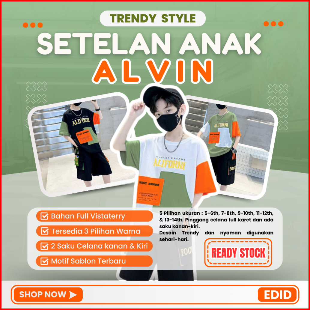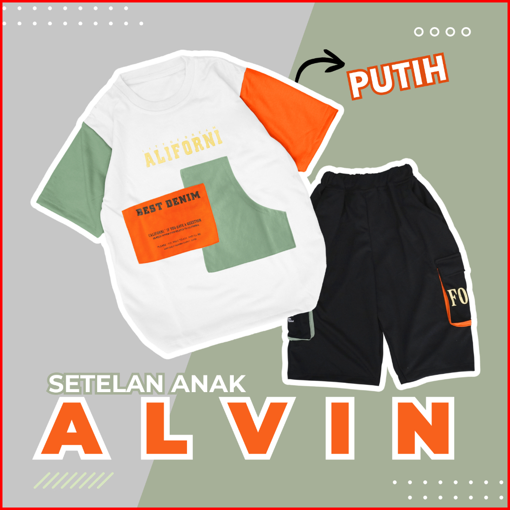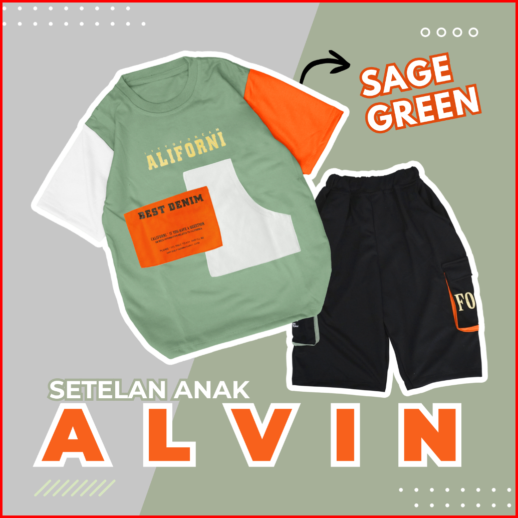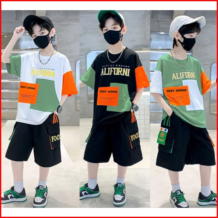 Mokokomo - Setelan Anak Laki-laki Alvin Lengan Pendek Usia 7-8 9-10 11-12 Fashion Kids Model Terbaru