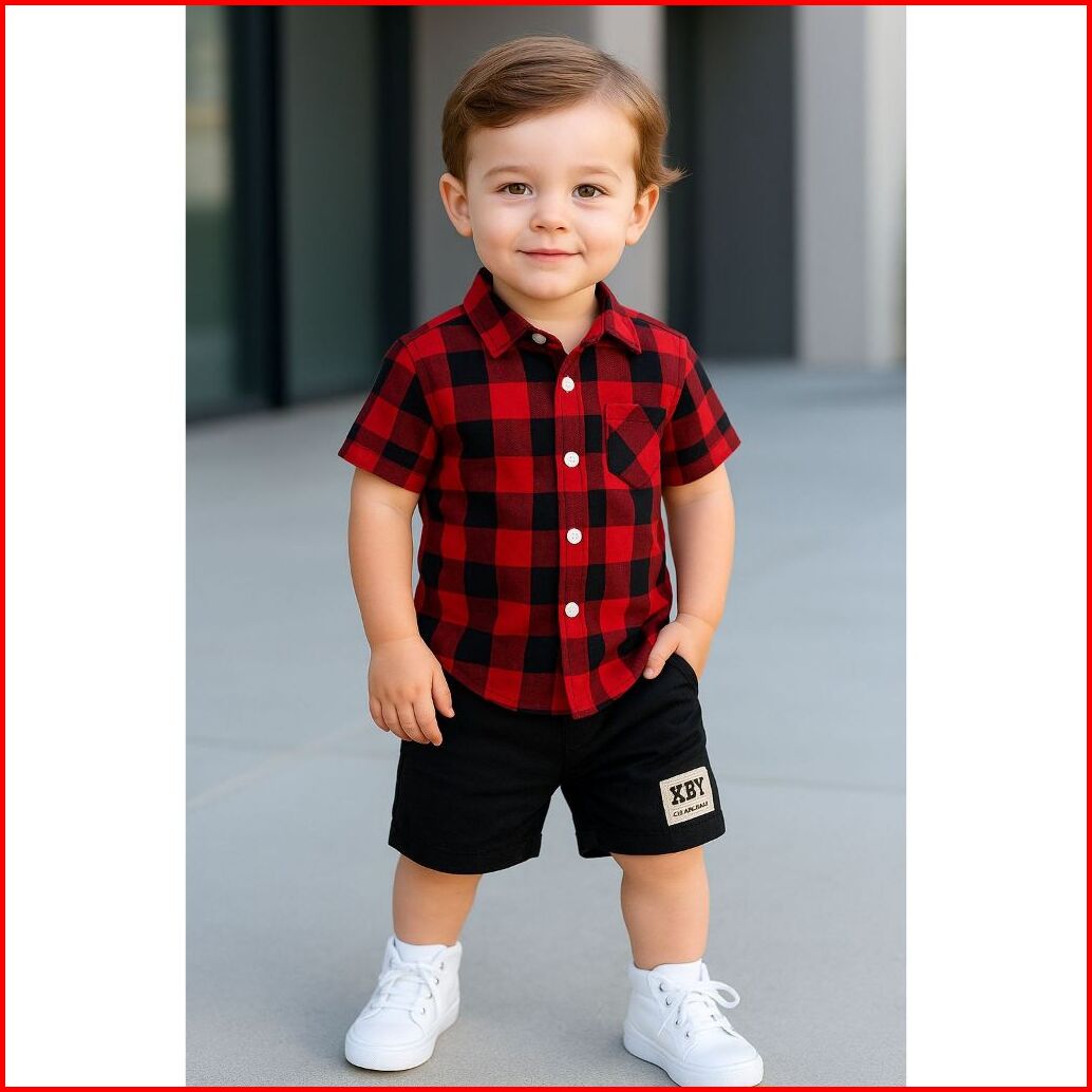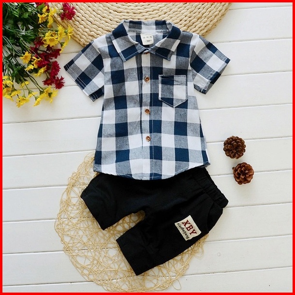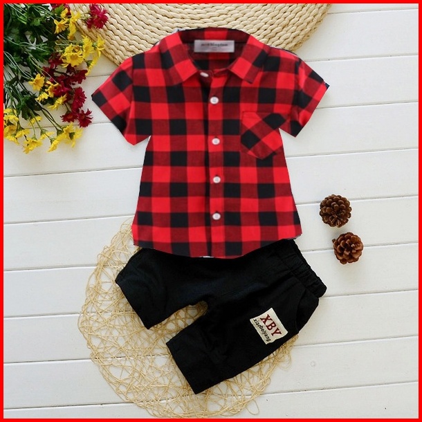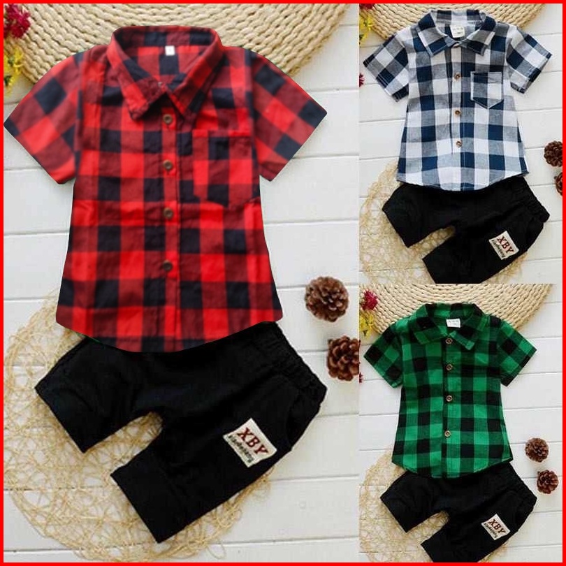 Vision Online-setelan Alex Baju Anak Laki-laki Kemeja Kotak Celana Pendek Usia 14 Tahun