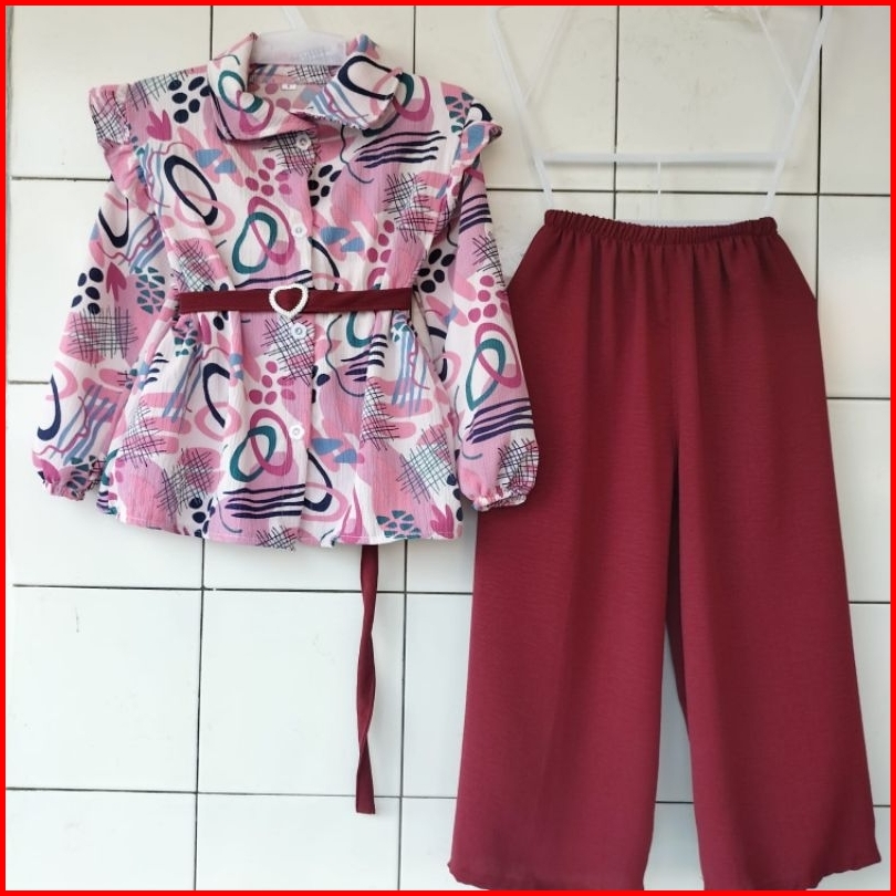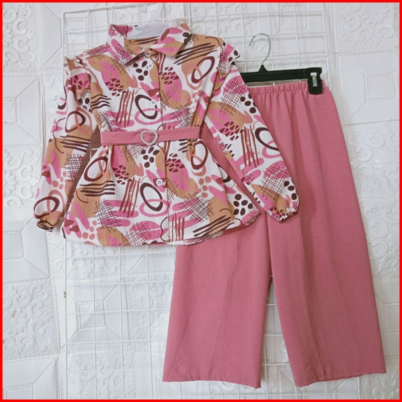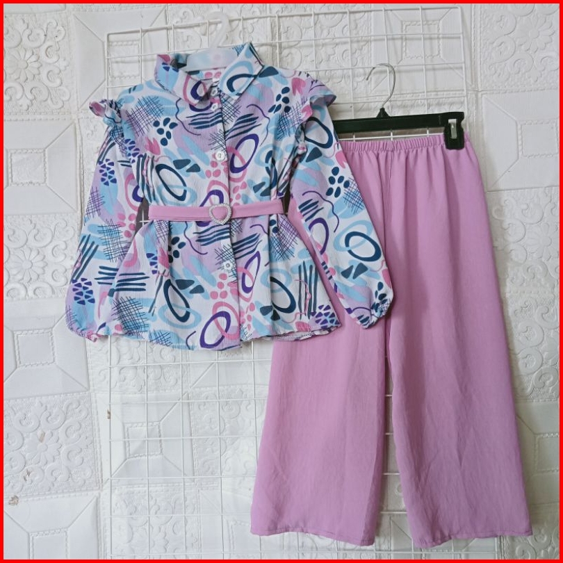 Setelan Anak Motif Abstrak Bahan Crinkle Ratu
