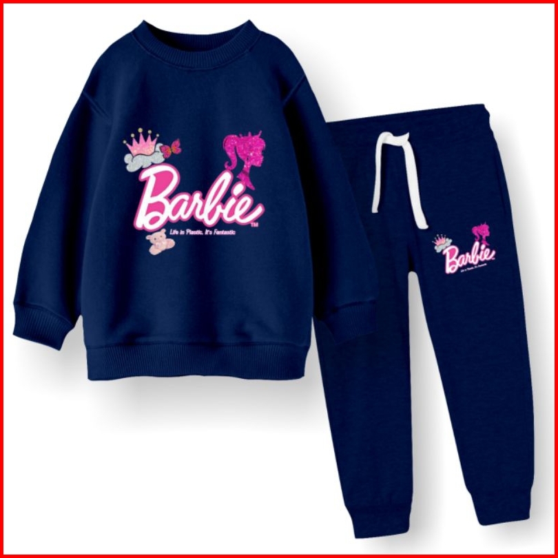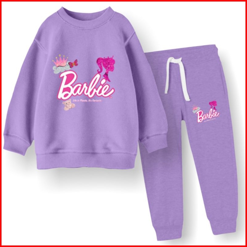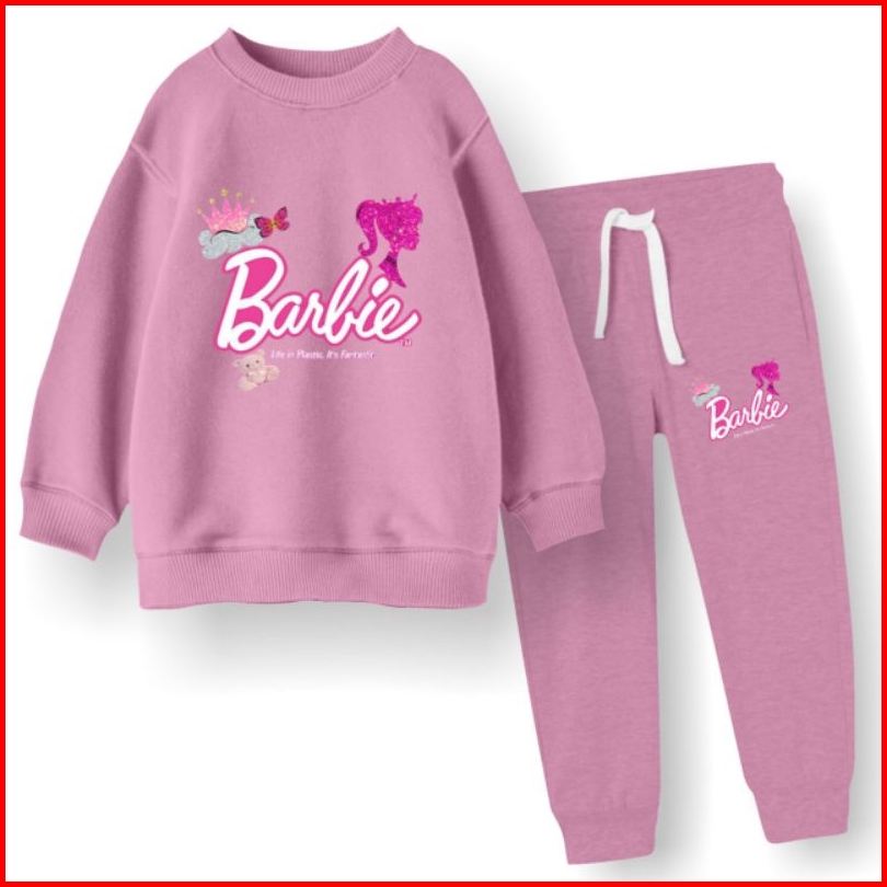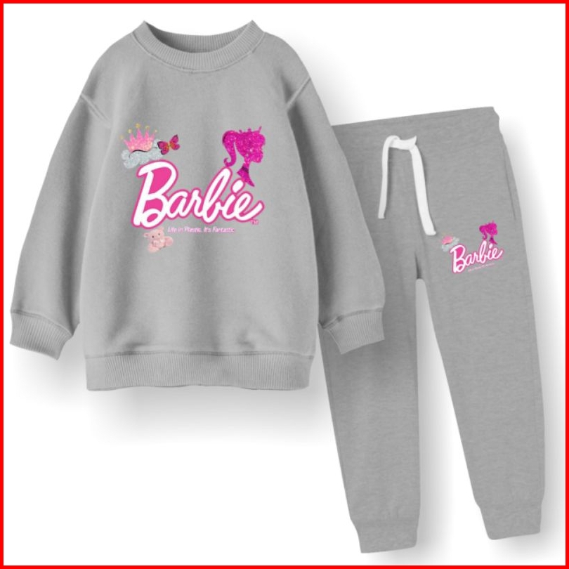 Setelan Joger Anak Perempuan Gambar Barbie Stelan Sweater Anak Usia 1-6 Tahun
