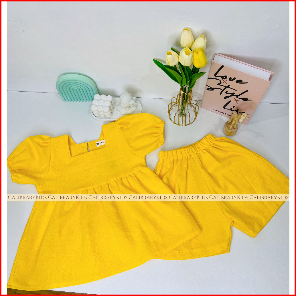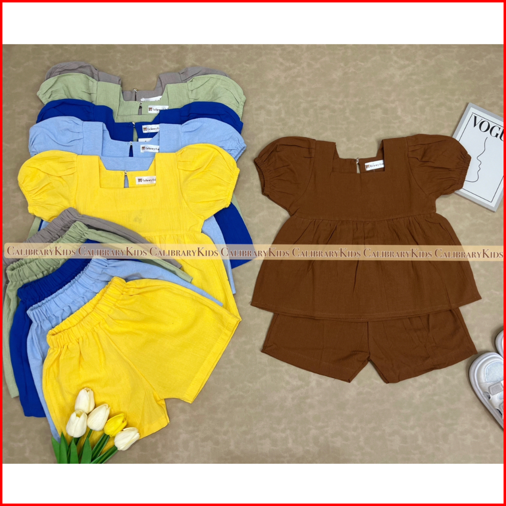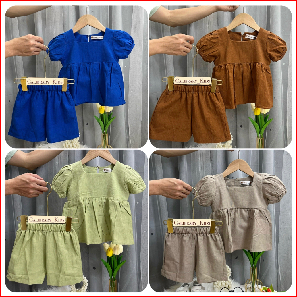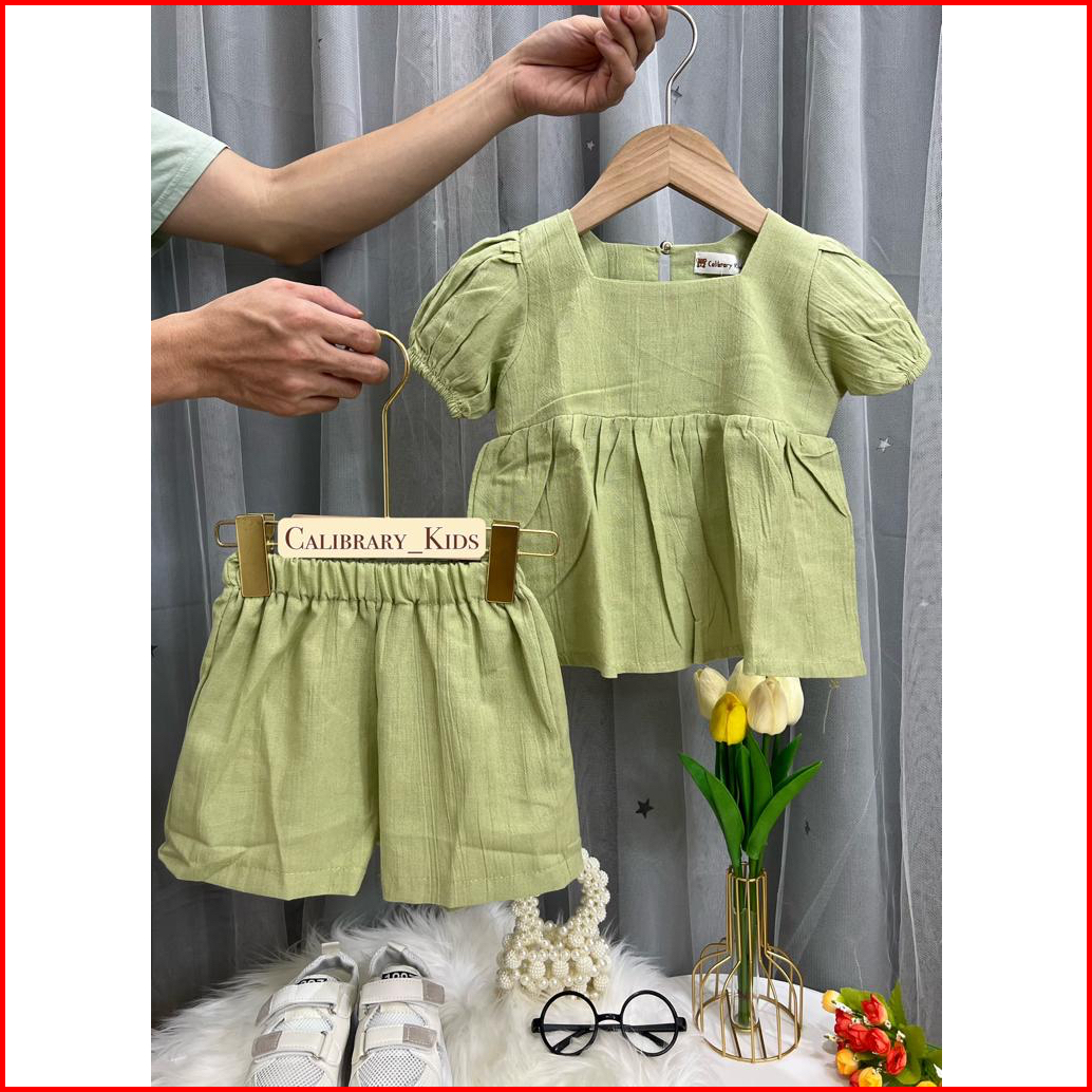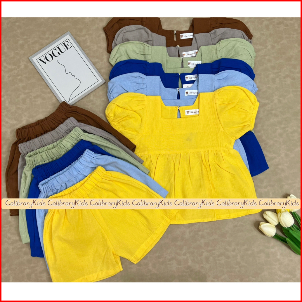 Calibrary Setelan Peplum Anak Perempuan 1-5tahun Setelan Linen Anak Perempuan Dress Anak Cewek Fashion Anak Perempuan