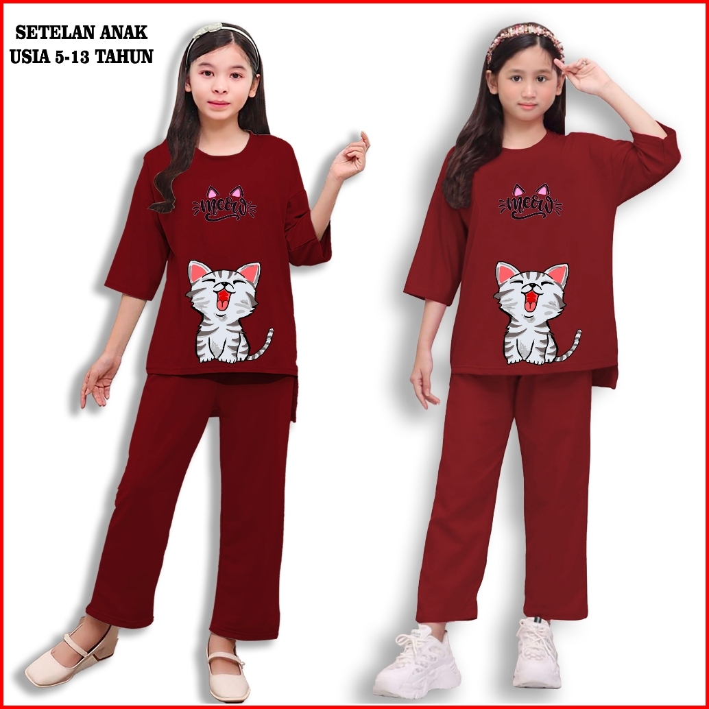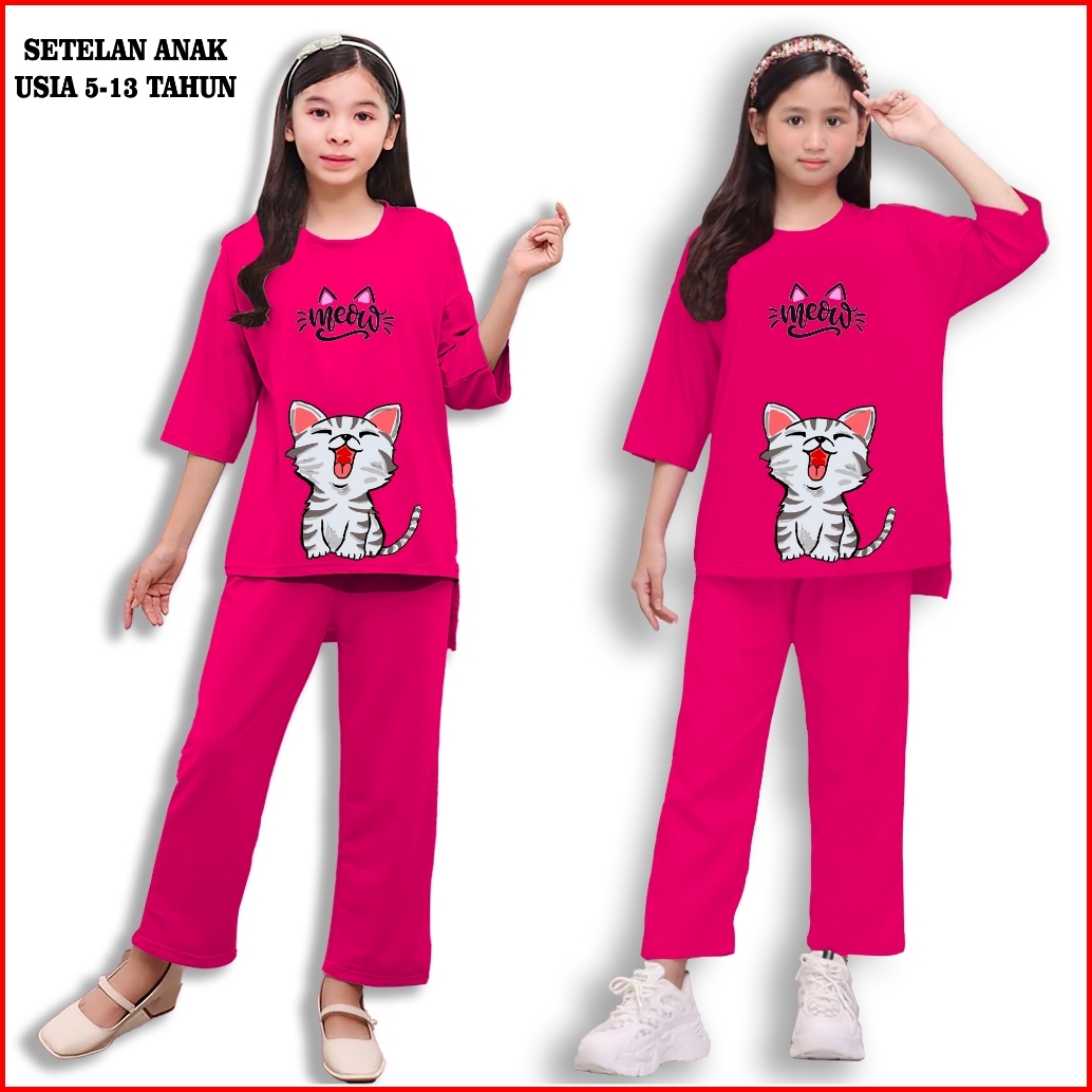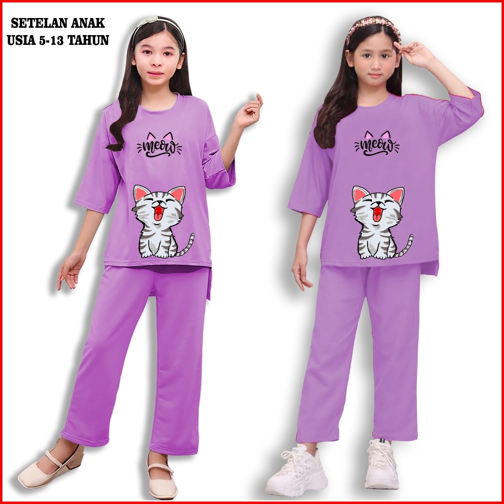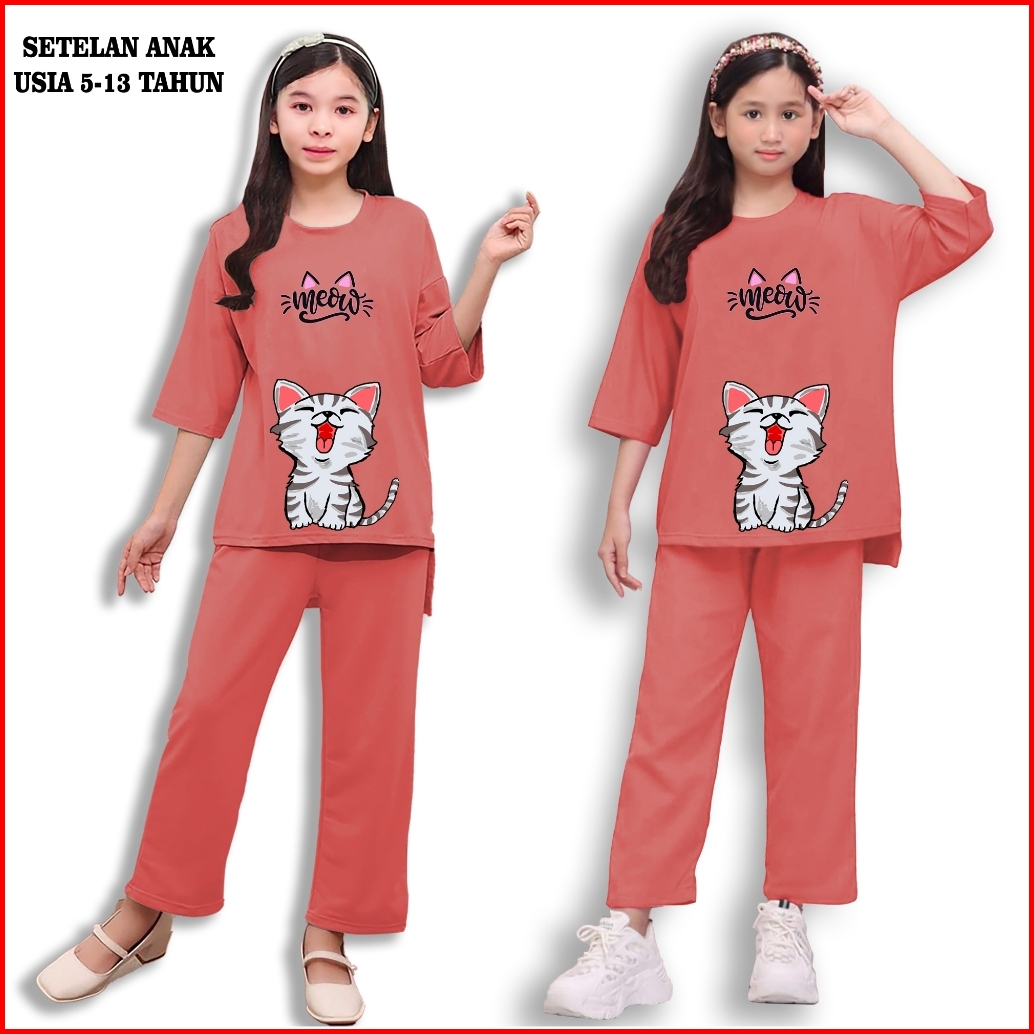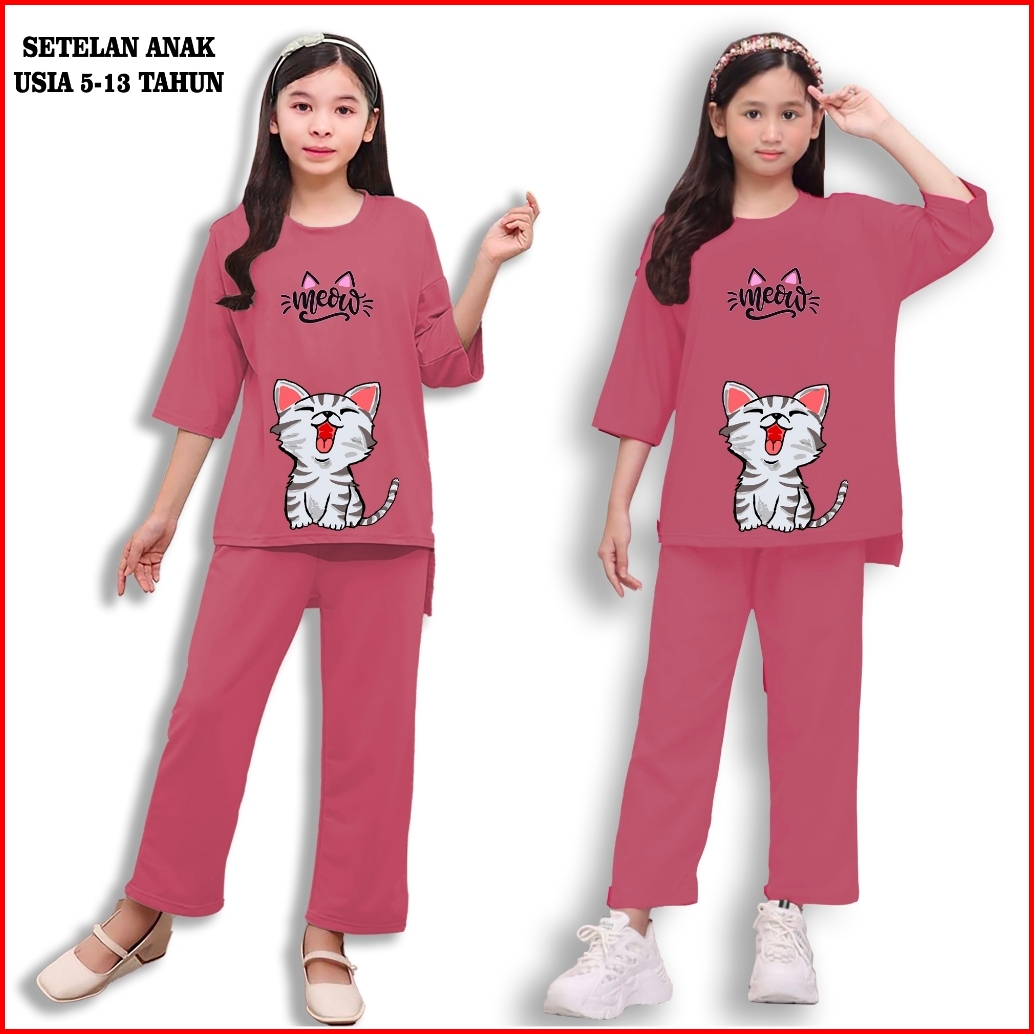 Setelan Anak Perempuan Meow Dw Usia 5-13 Tahun Setelan Anak Dorina