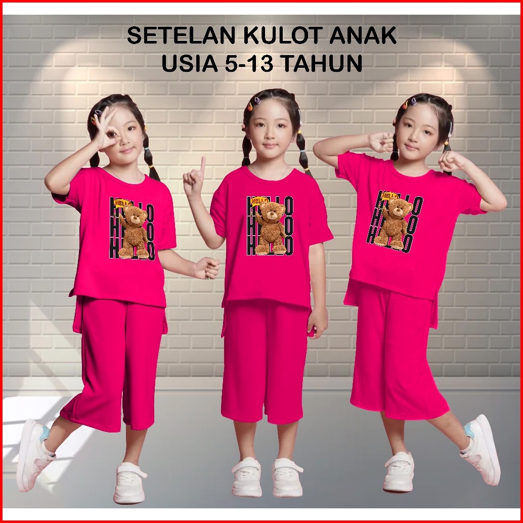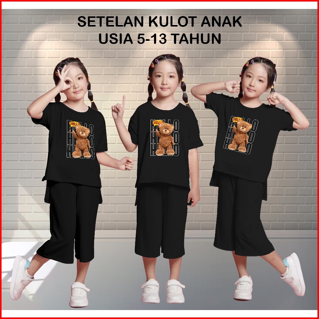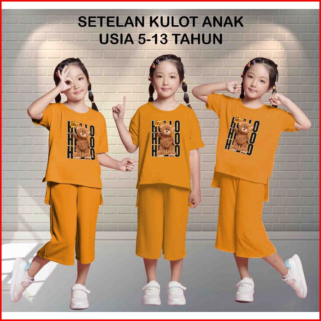 Setelan Anak Perempuan Bear Hello Usia 5-13 Tahun Setelan Kulot Anak Dorina