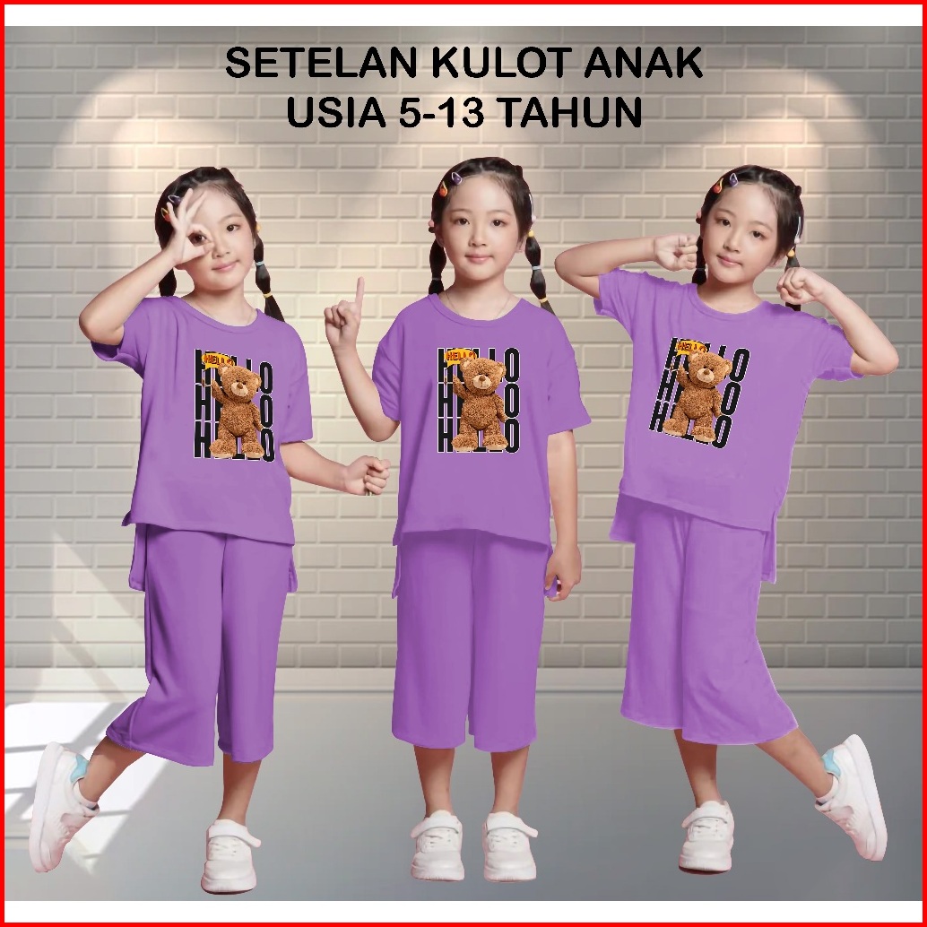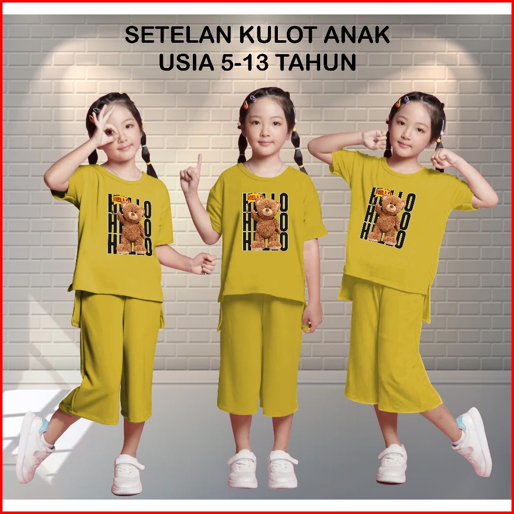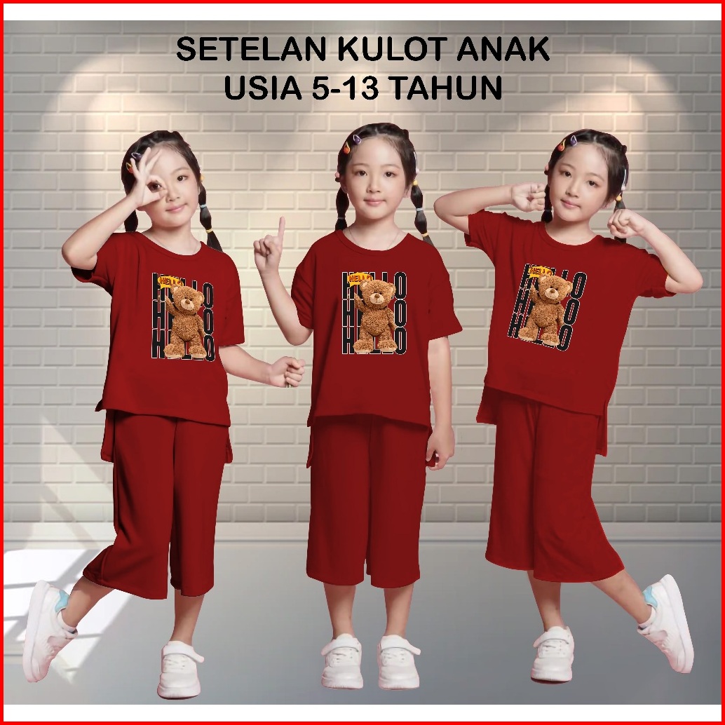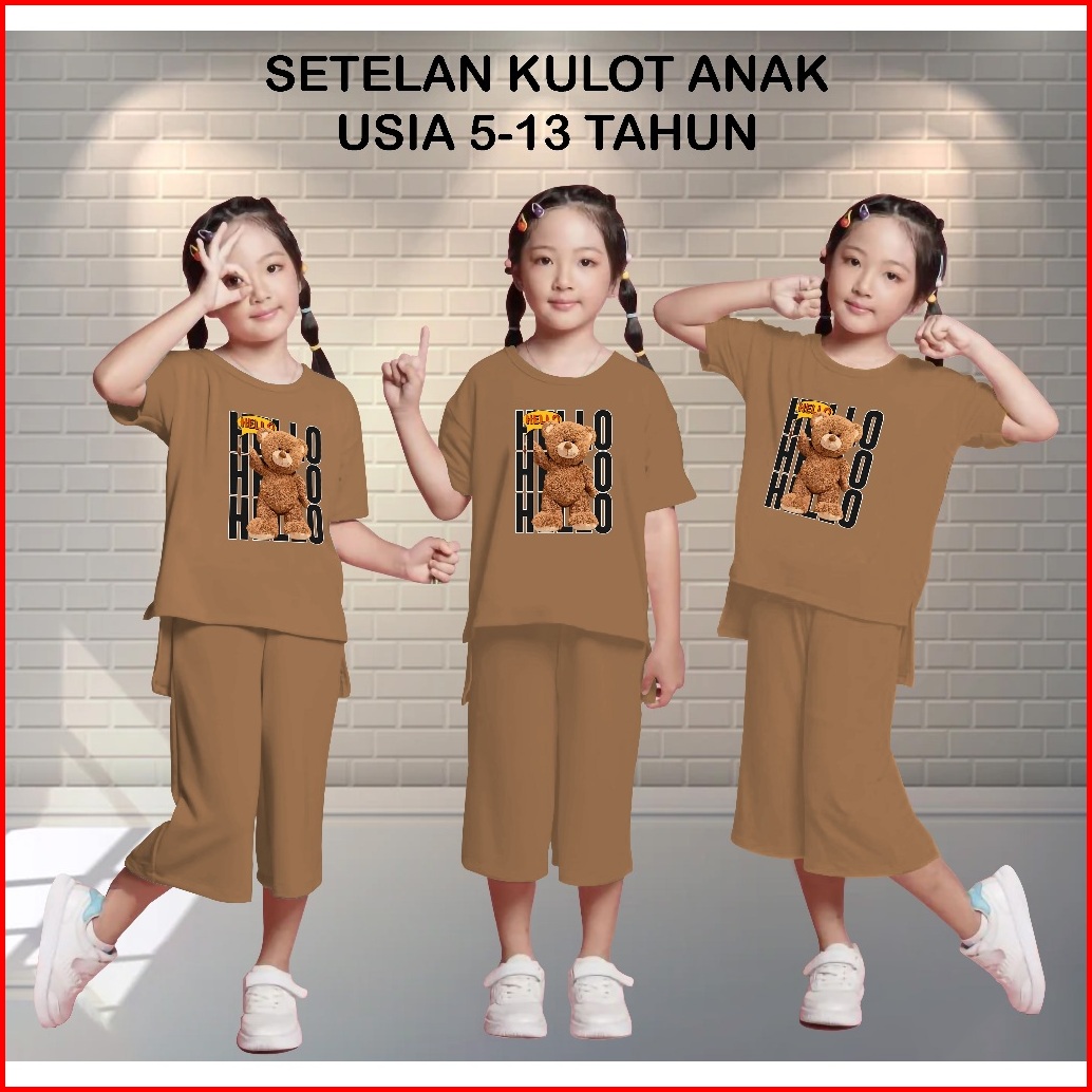 Setelan Anak Perempuan Bear Hello Usia 5-13 Tahun Setelan Kulot Anak Dorina
