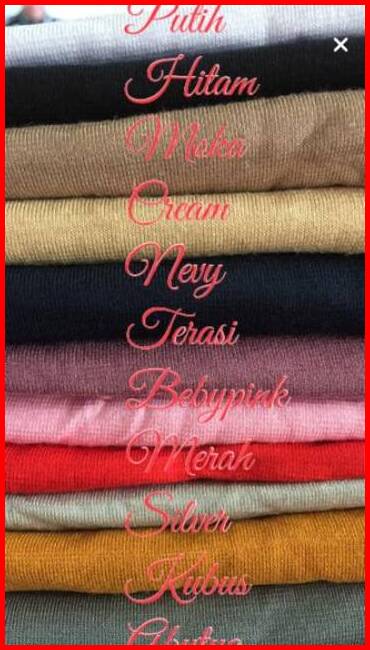 Maroon, Hitam, Abu Tua, Abu Silver, Kubus, Hijau Tua, Mocca, Crem, Navy, Putih, Broken White, Merah cabe