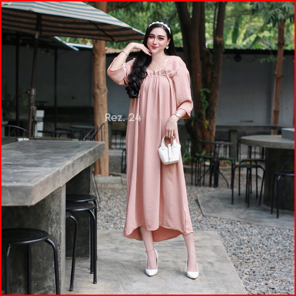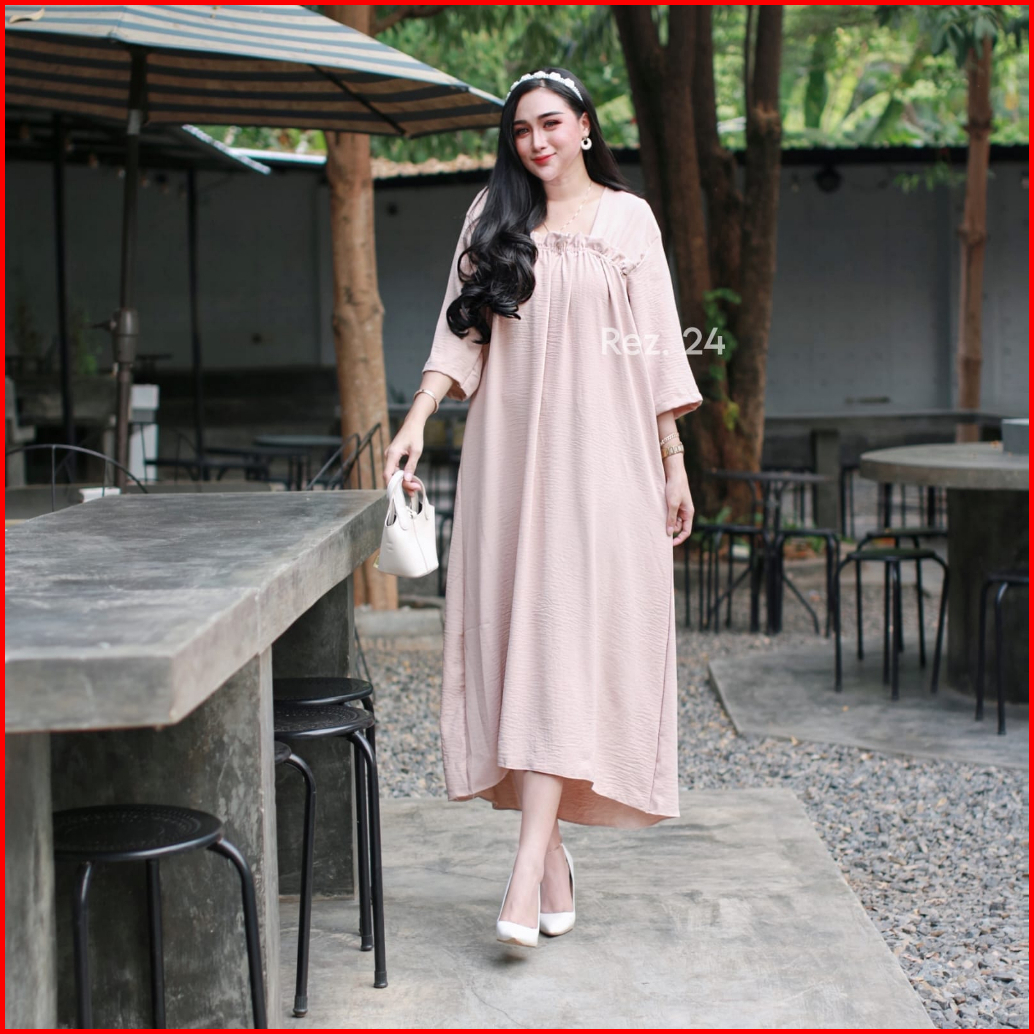 Daster Fuji Long Crinkle Airflow Ld 112 Longdress Fuji Crinkle Premium Dress Panjang Wanita Kekinian