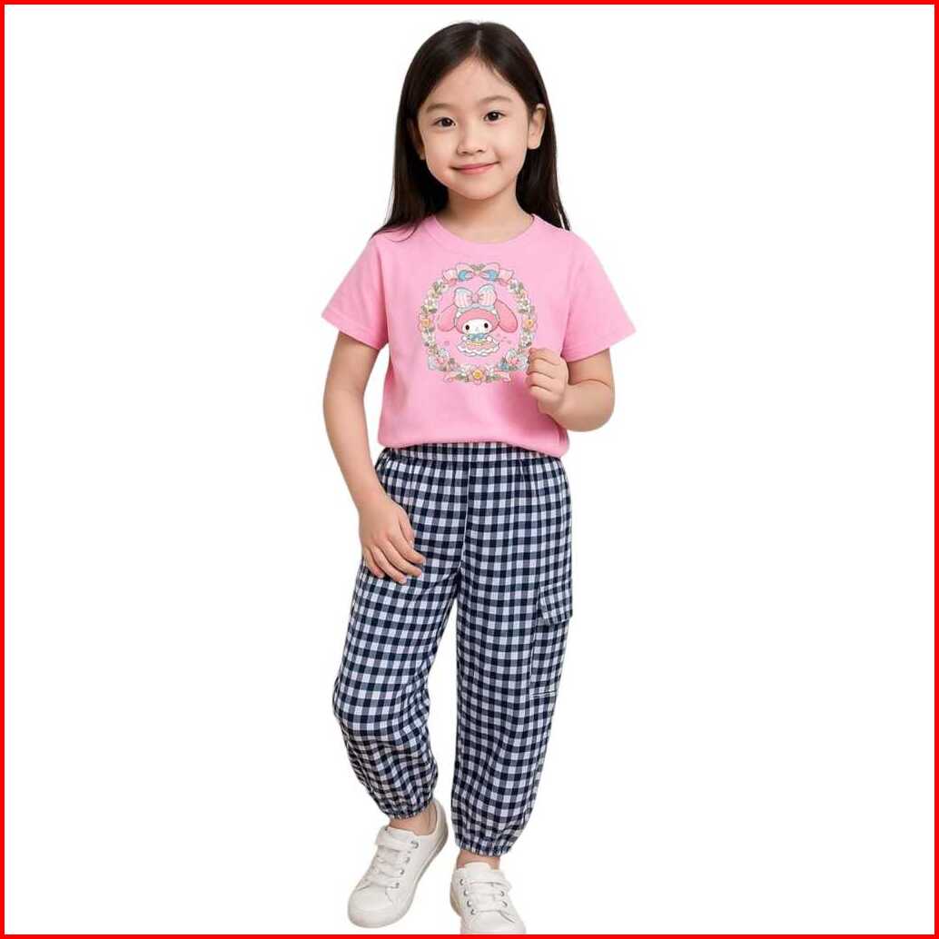 Gsfit4you Setelan Anak Perempuan Set Celana Anak Cargo One Set Anak Murah Umur 2-11th