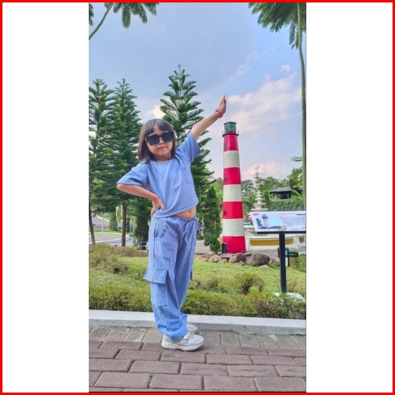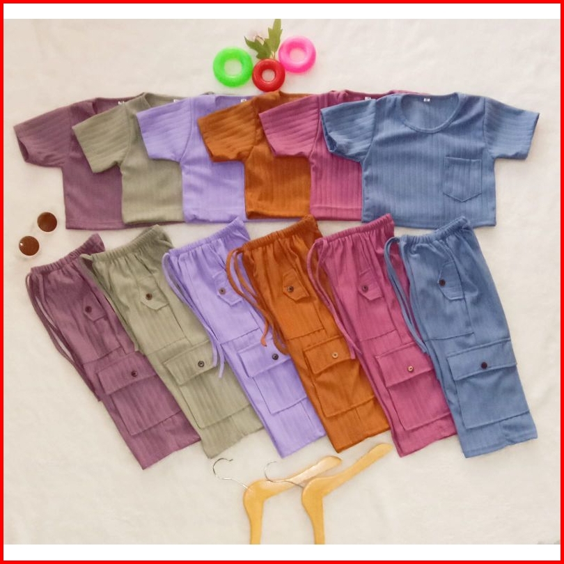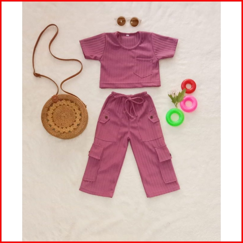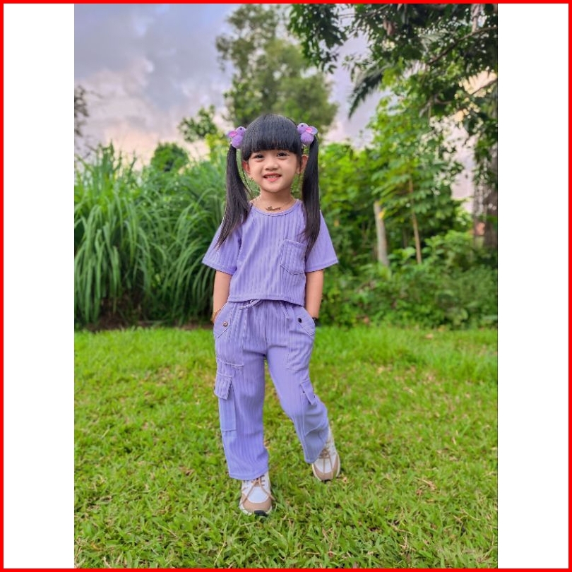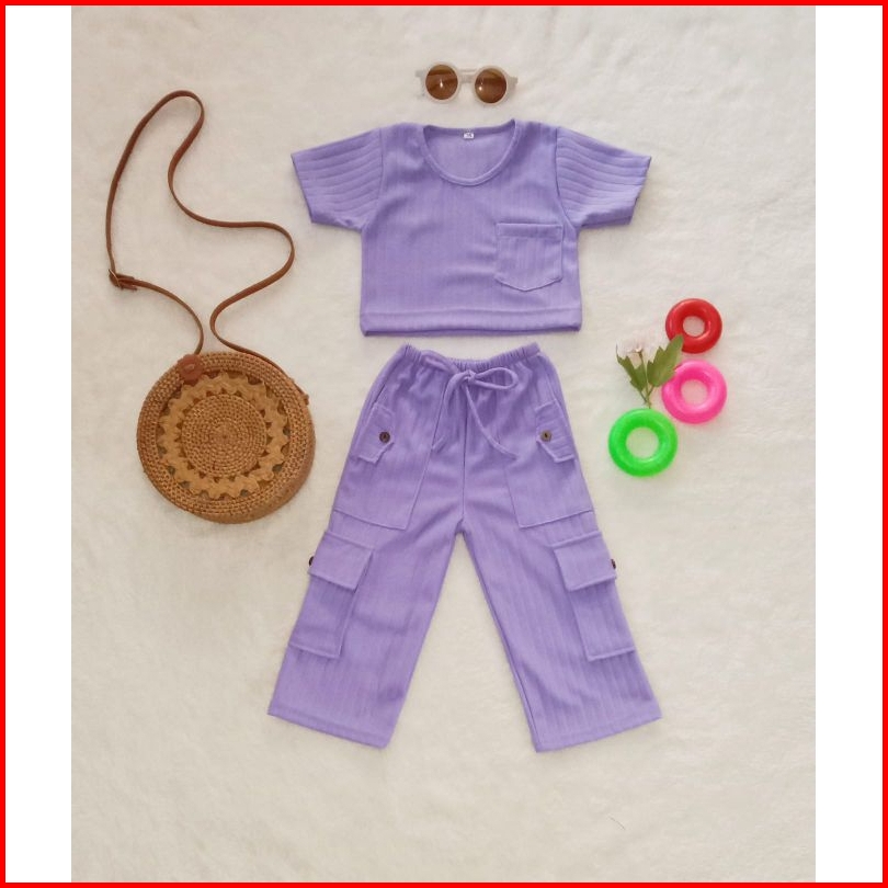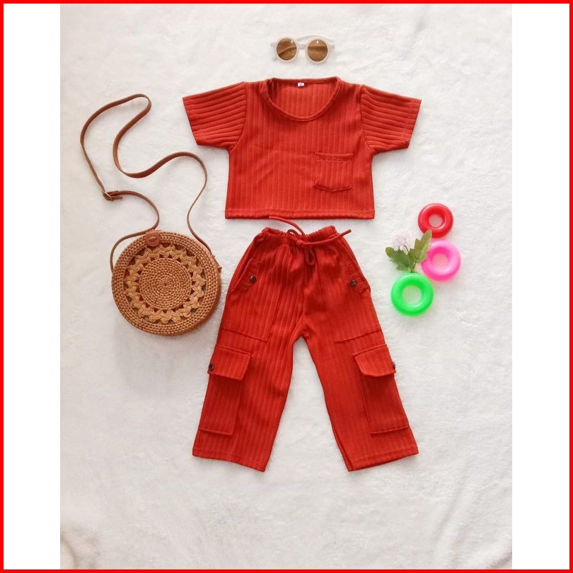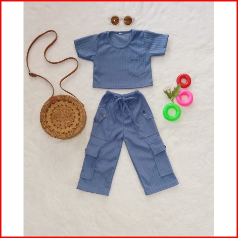 Setelan Cargo Anak Perempuan Bahan Hornet Knit 1-10 Tahun