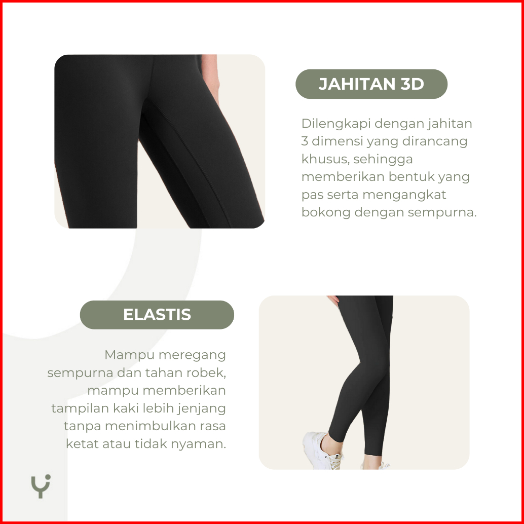Youra - Legging Celana Olahraga Wanita High Quality Black Hitam