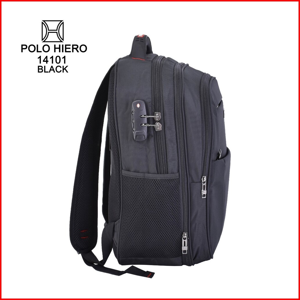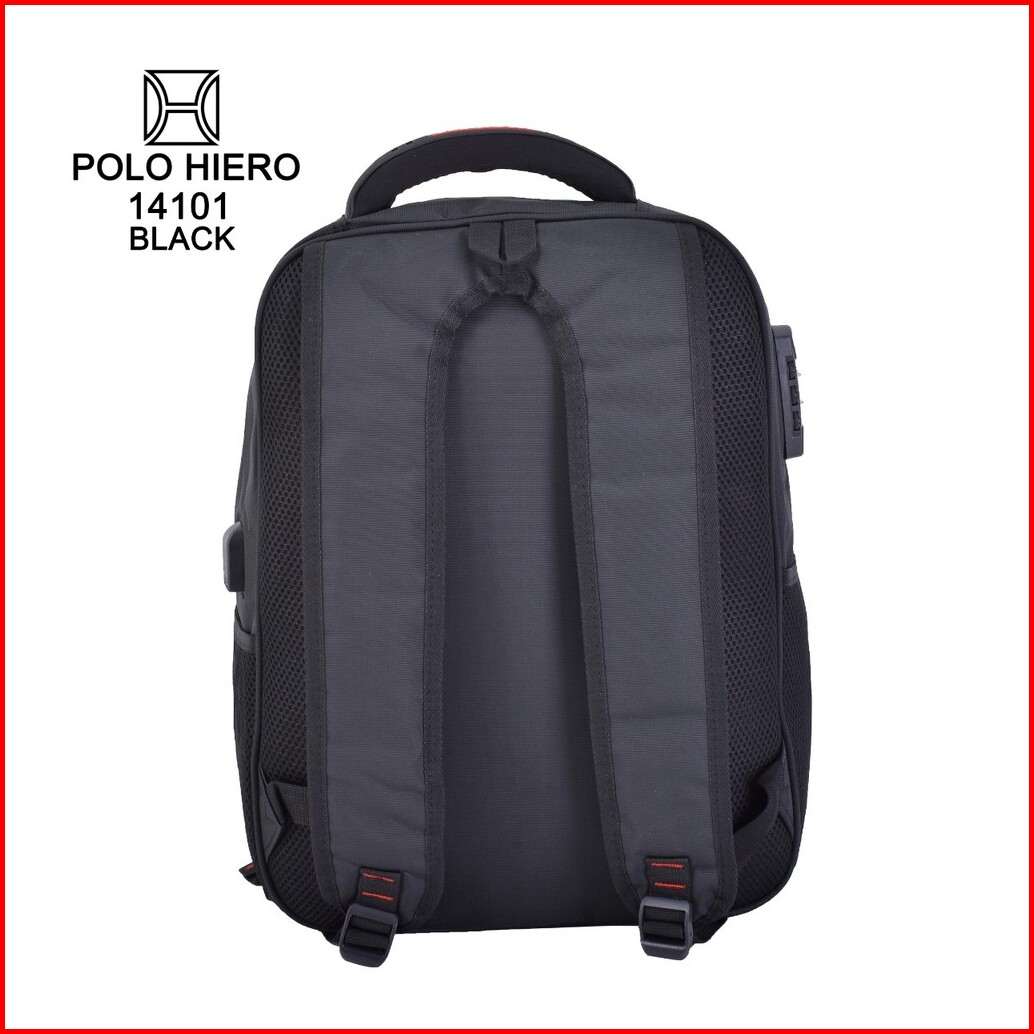 Tas Ransel Backpack Sekolah Polo Hiero 14101 Tas Laptop Kerja Free Kabel Usb Free Rain Cover