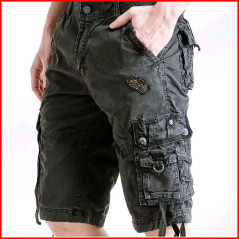 Celana Kargo Pendek Pria Size Jumbo 27-44 Bahan Semi Jeans Tebal