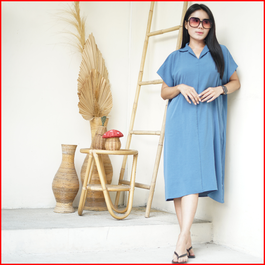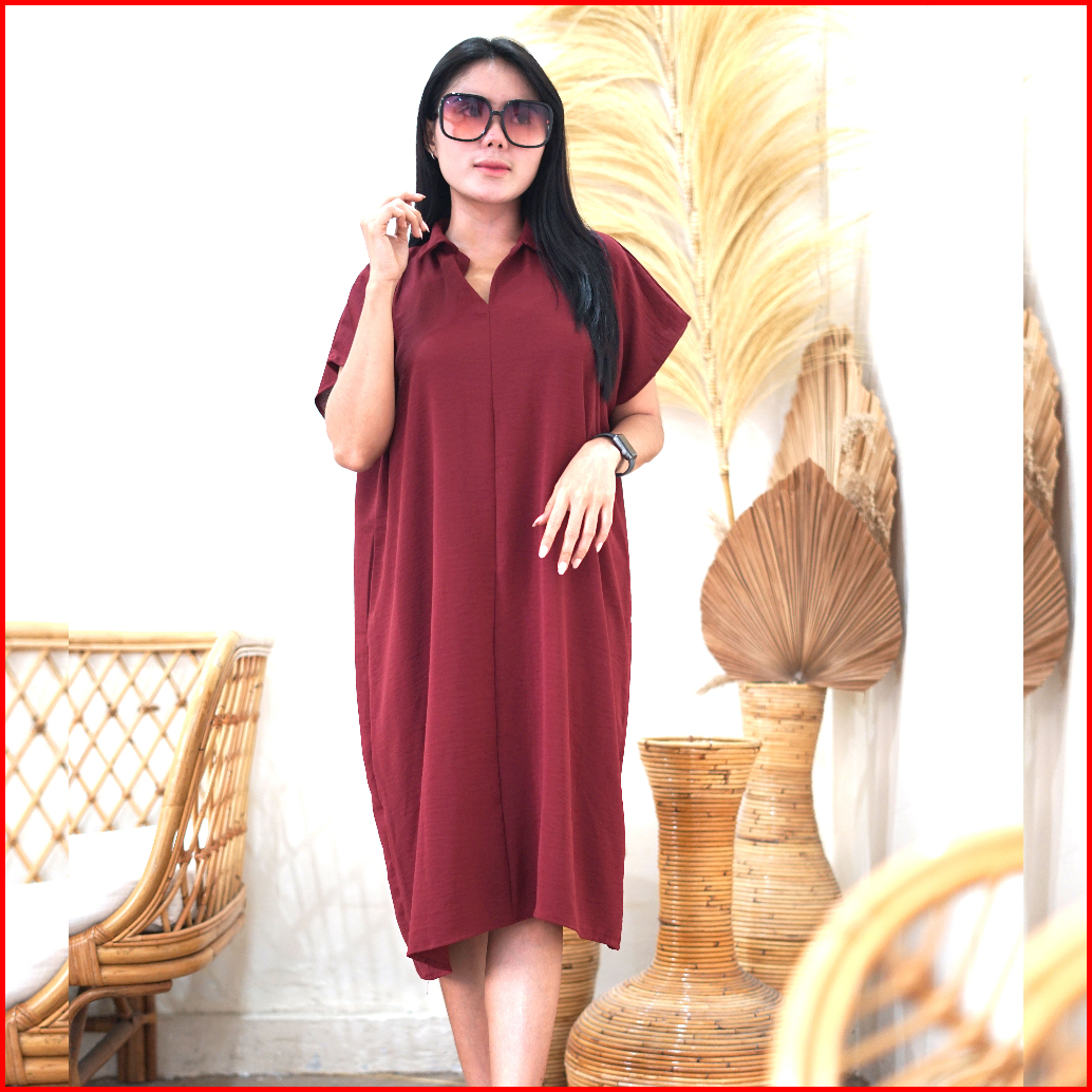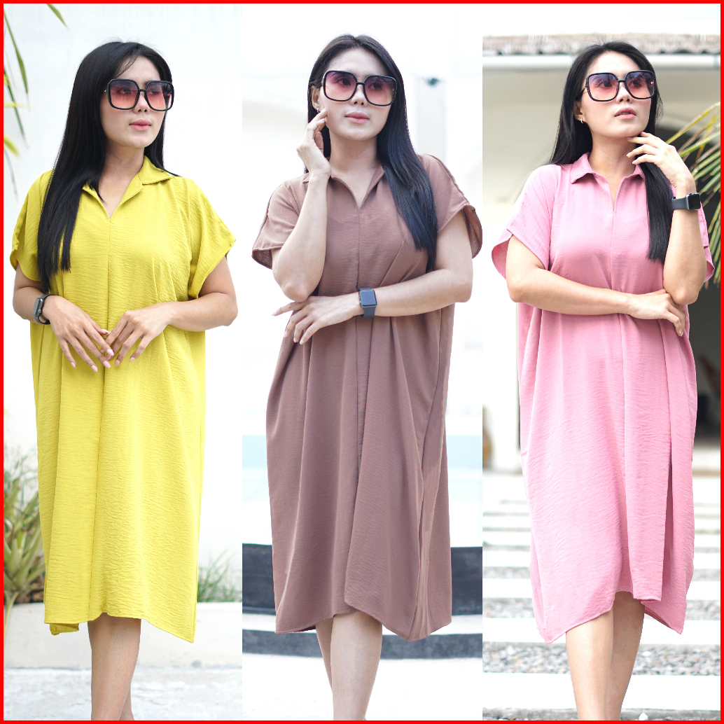 Jisso Daster Selutut Cringkel Airflow Mini Dress Kerah By Larissa.co