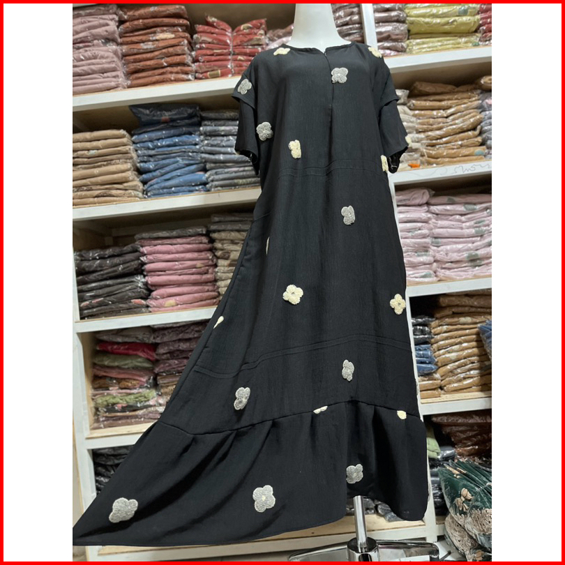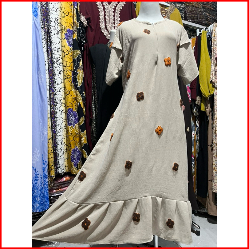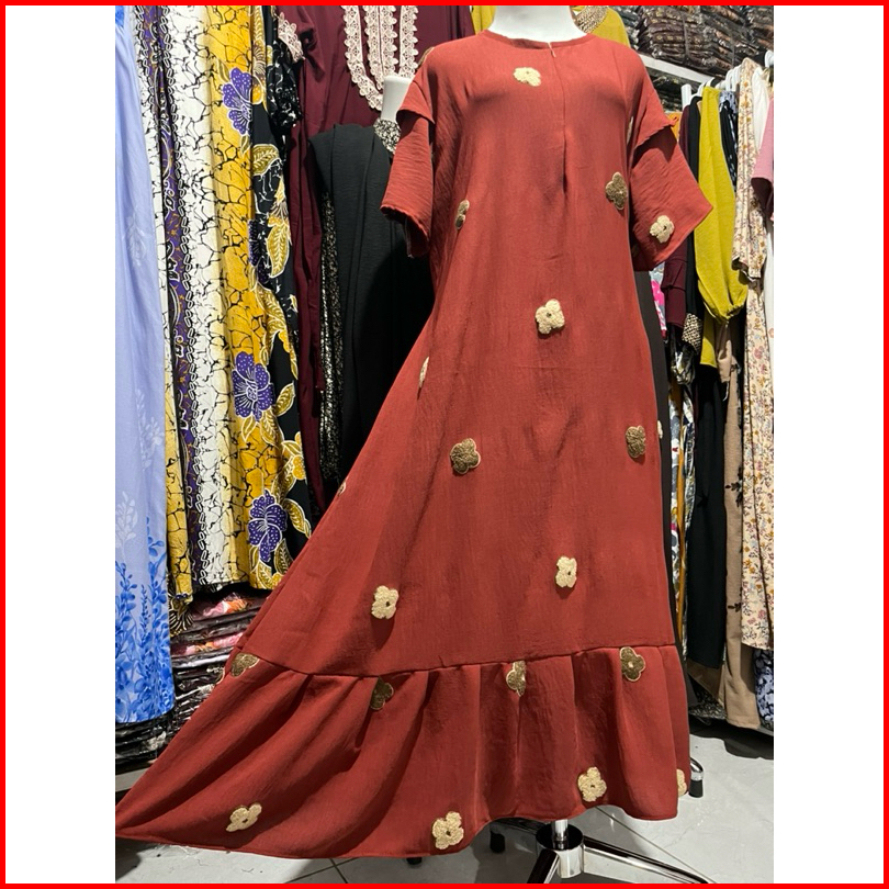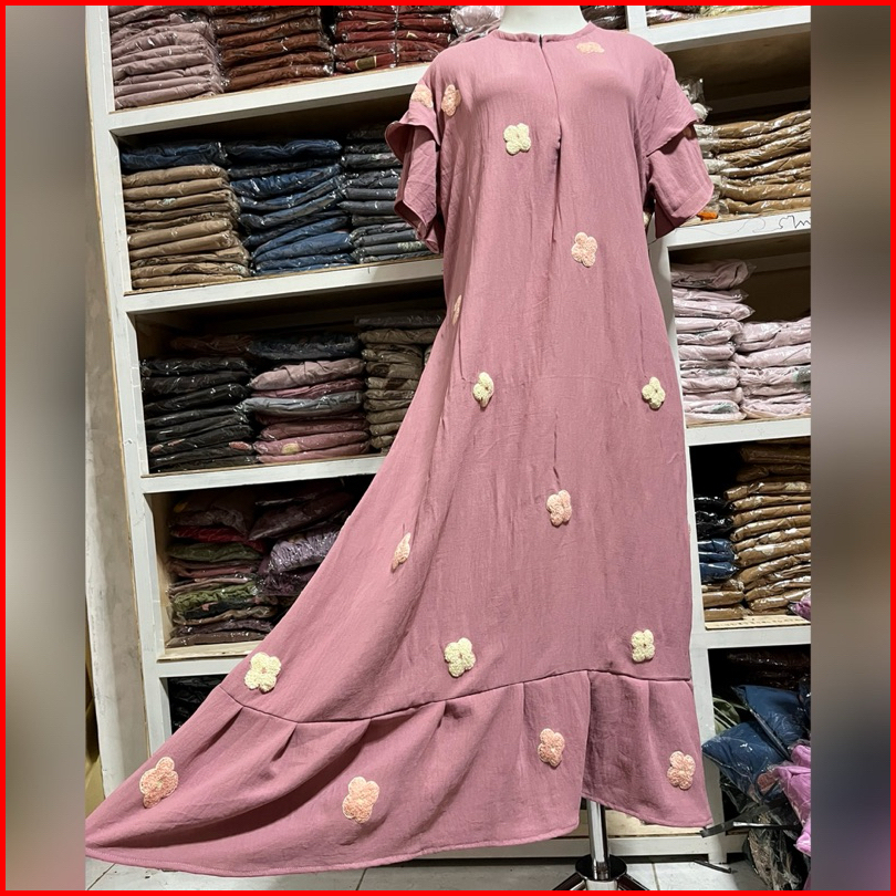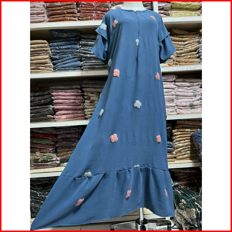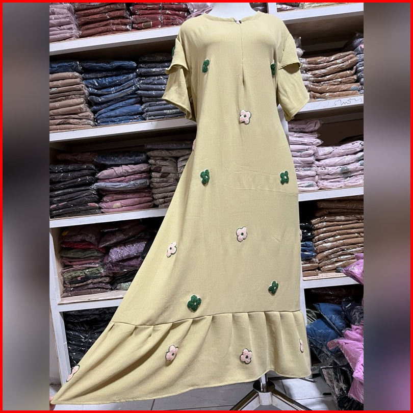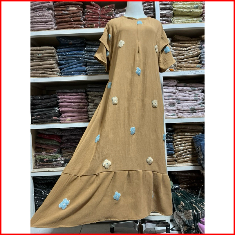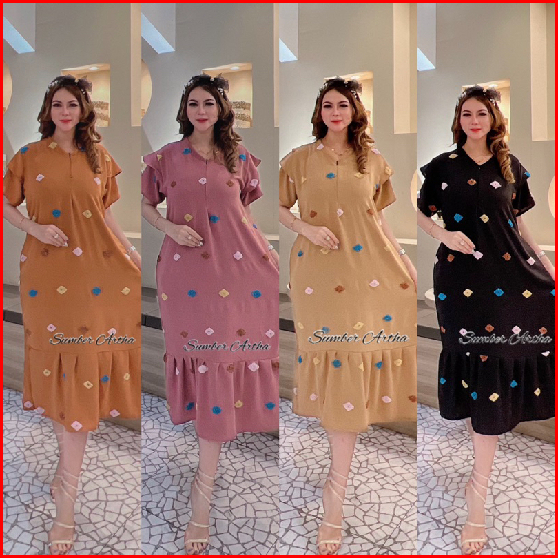 Dress Ruffle Daster Pompom Nayla Busui Cringkle Premium Terbaru