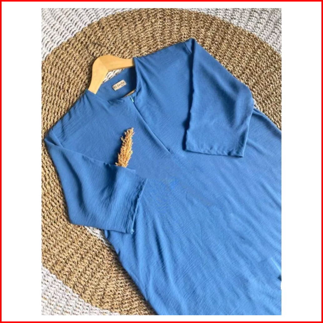 Daster Crincle Long Model Sleting Depan Busui Lengan 3 4
