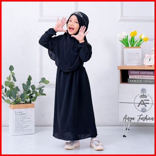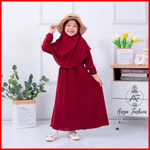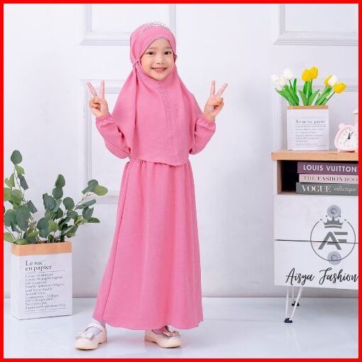 Aisha Dress Anak Terbaru Gamis Anak Best Seller 2024 Gamis Anak Syari Set Hijab Cringkle Premium Baju Gamis Anak Muslim